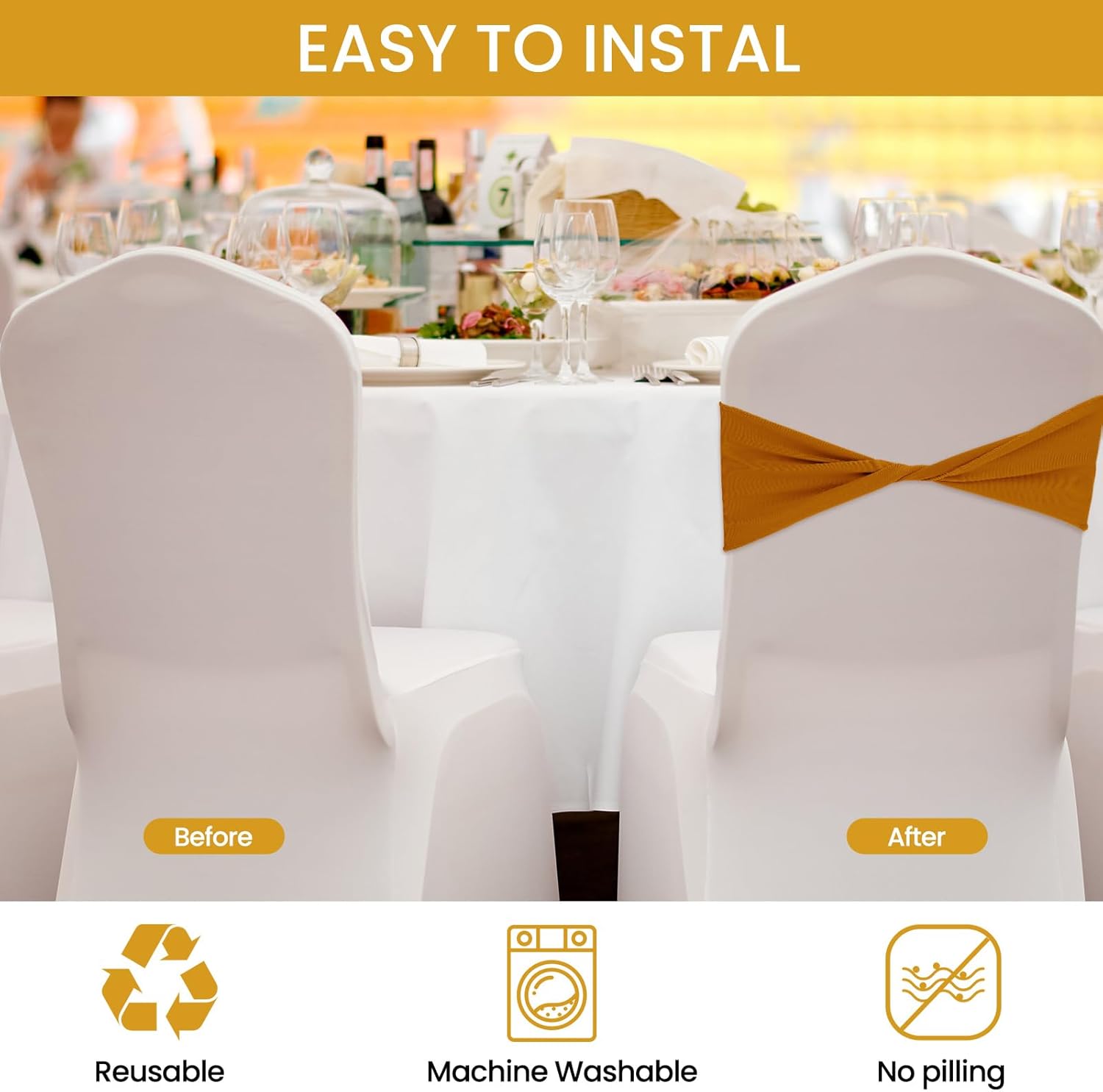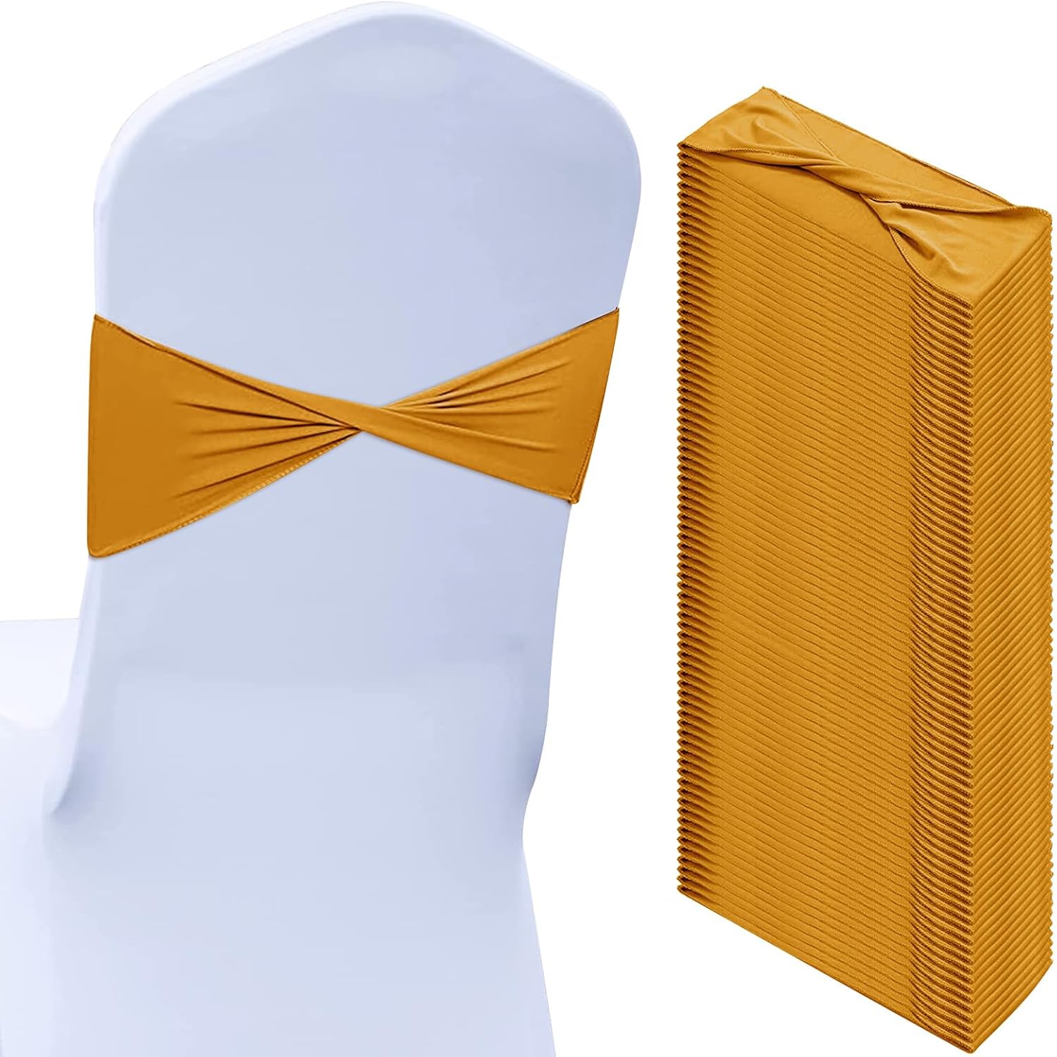 Kinlop 50 Pcs Spandex Chair Sashes Bows Chair BB0C3V65Z6Tands Slider Sashes for Covers Elastic Bands Ties Without Buckle Decorations for Wedding Party Events Ceremony Birthday(Mustard Yellow)