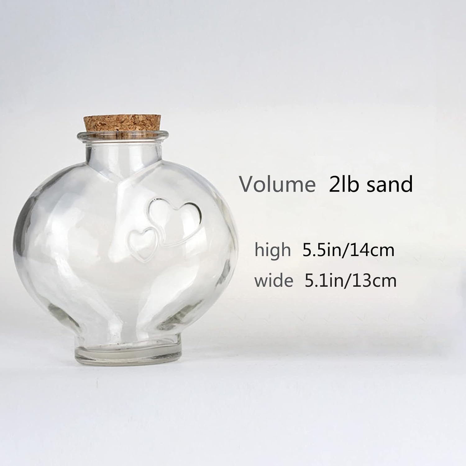 - Wedding Heart Unity Sand Ceremony Set:Heart Shaped vase size:5 X 5 X 2 Inch ,Heart Shaped Bottle holds 1.5 lbs of sand . the two sided vases size 6.5 X 2.5 X 2.5 Inch