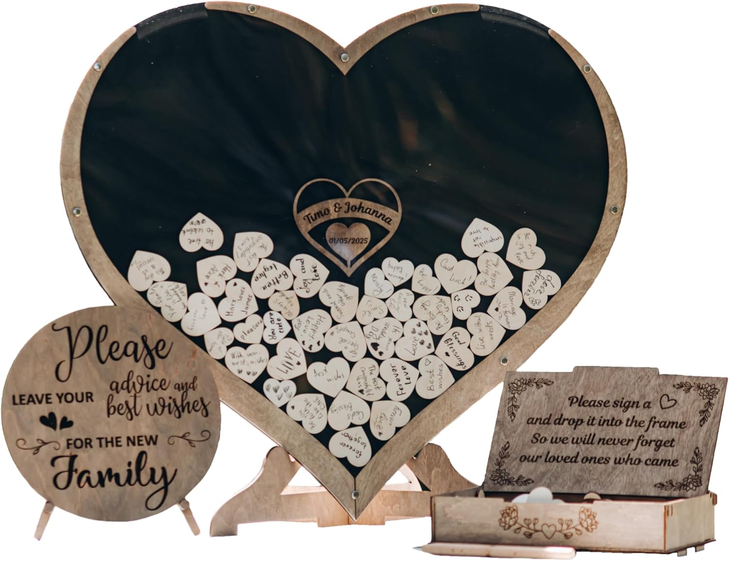 - 【Can Be Customized】Customize your wedding drop box guest book - write names and date. Choose the size of the heart guestbook sign according to the number of your guests.