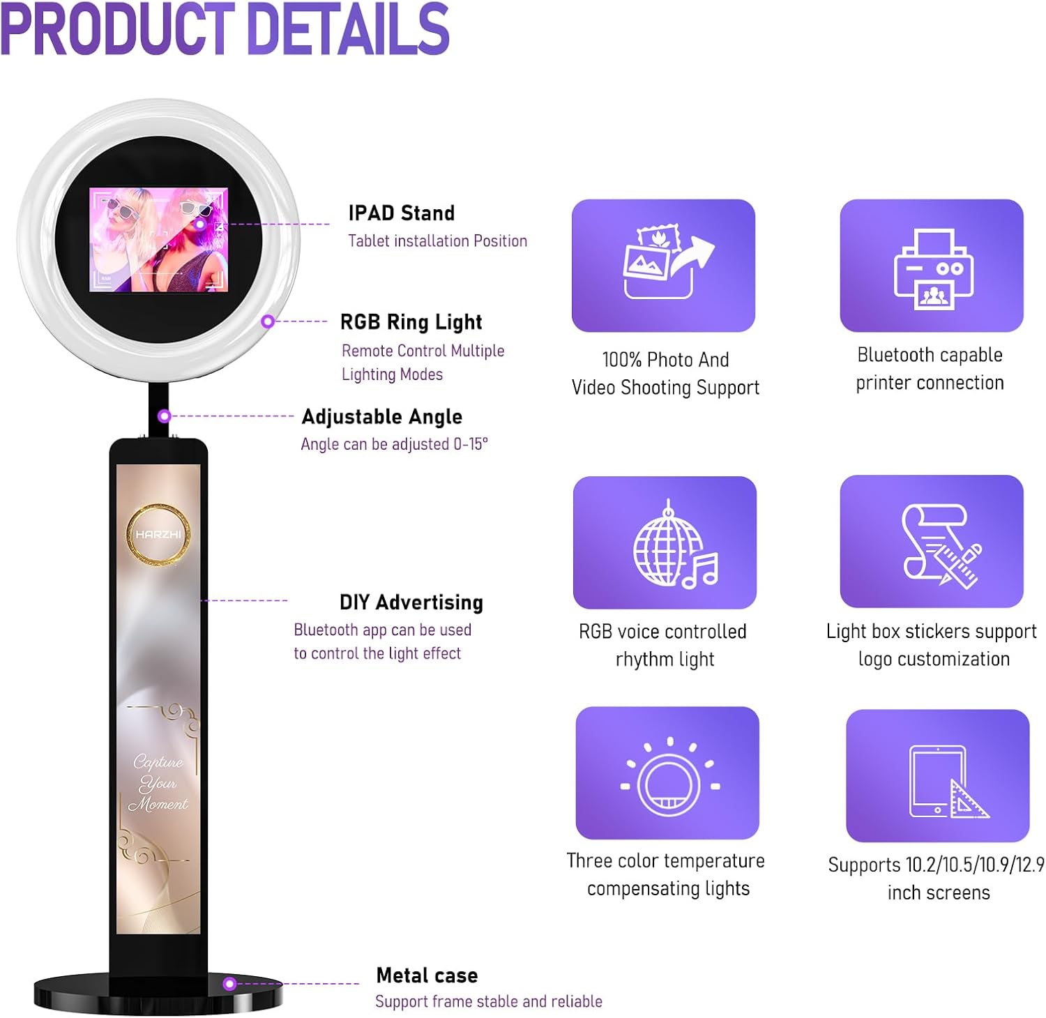 HARZHI Portable Photo Booth Compatible with Ipad, for Ipad Photo Booth Shell Stand Stand Provide Chacktok Photo Booth Software for Party and Wedding, Free Custom Logo, Flight Case