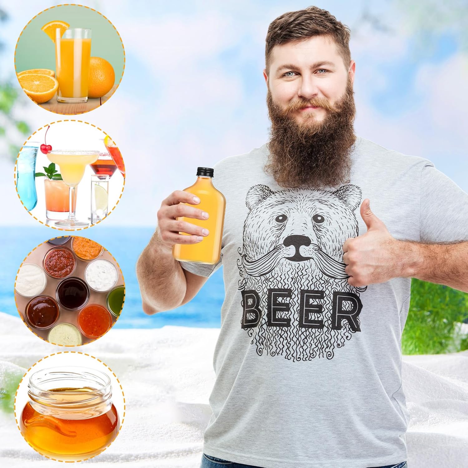 - Multi Purposes: our small glass flask bottles have a small capacity, not only suitable for liquor, hot sauce, beer, whiskey, wine, champagne, maple syrup, and vanilla, also suitable for you to dispense juice, essential oil, etc., can be helpful in kitchen, bar, travel, camping, restaurant, BBQ and more