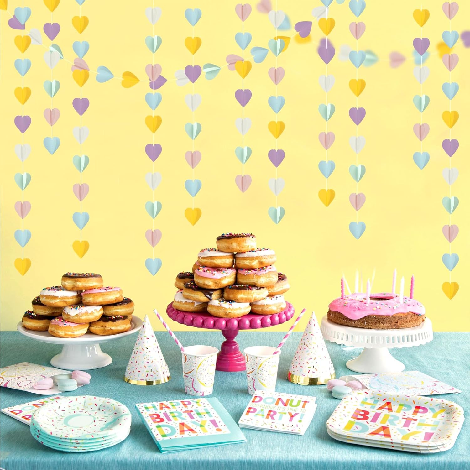 Pastel-Rainbow Party-Decorations 3D Heart Garland - 39Ft Yellow Blue Pink Purple Mint Hanging Paper Streamers Banner, Engagement Wedding Bachelorette Baby Bridal Shower Decor Ouruola
