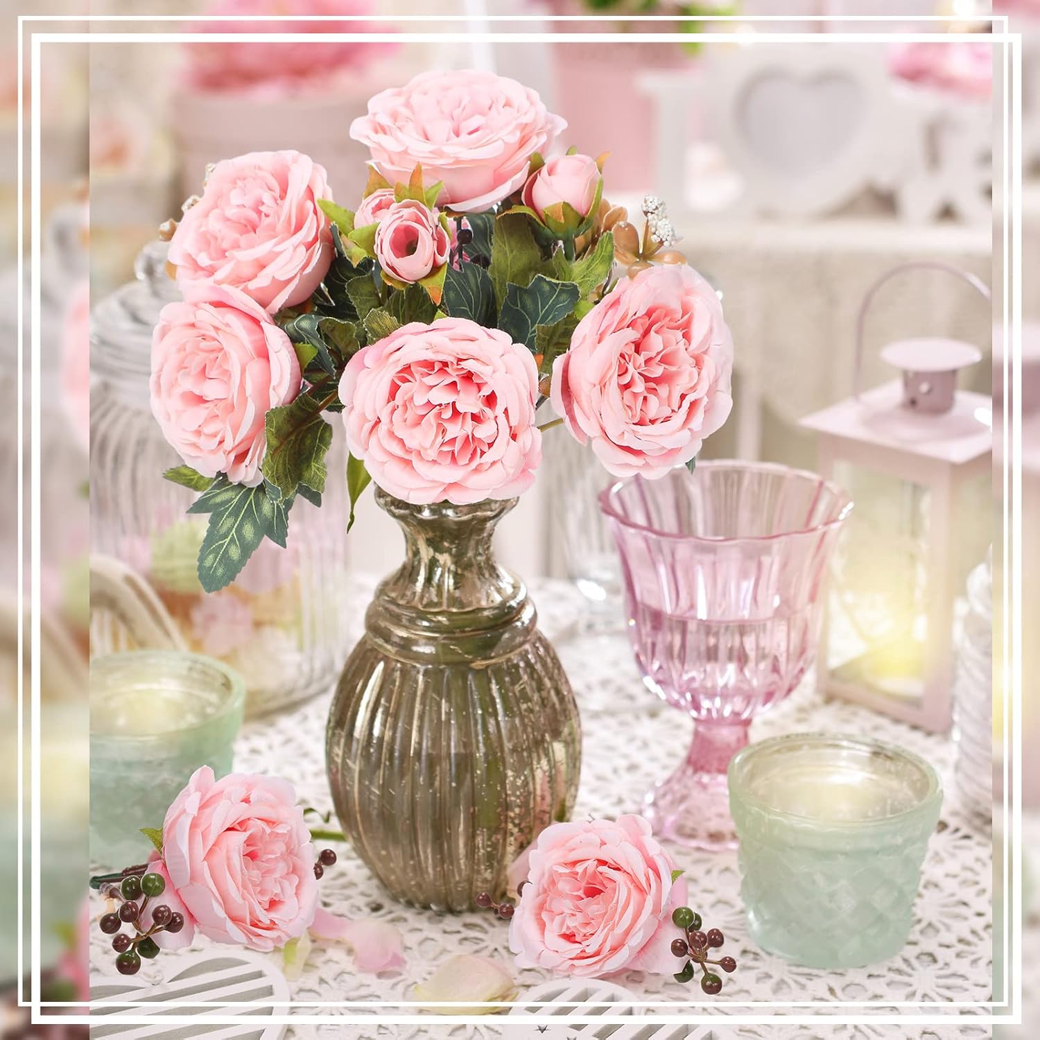 8 Bundles Artificial Peonies Flowers Boho Faux Flowers Arrangements Artificial Centerpiece Spring Bouquet Floral Wedding Decoration for Vase(Pink)