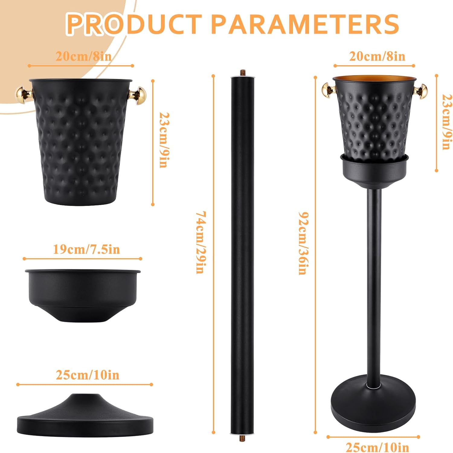 - 【Convenient Size】: The overall height of the stand is 92cm/32in and the size of the ice bucket is 20×23cm/7.9×9.1in. The weight of the product is 15 lbs.Very stable.