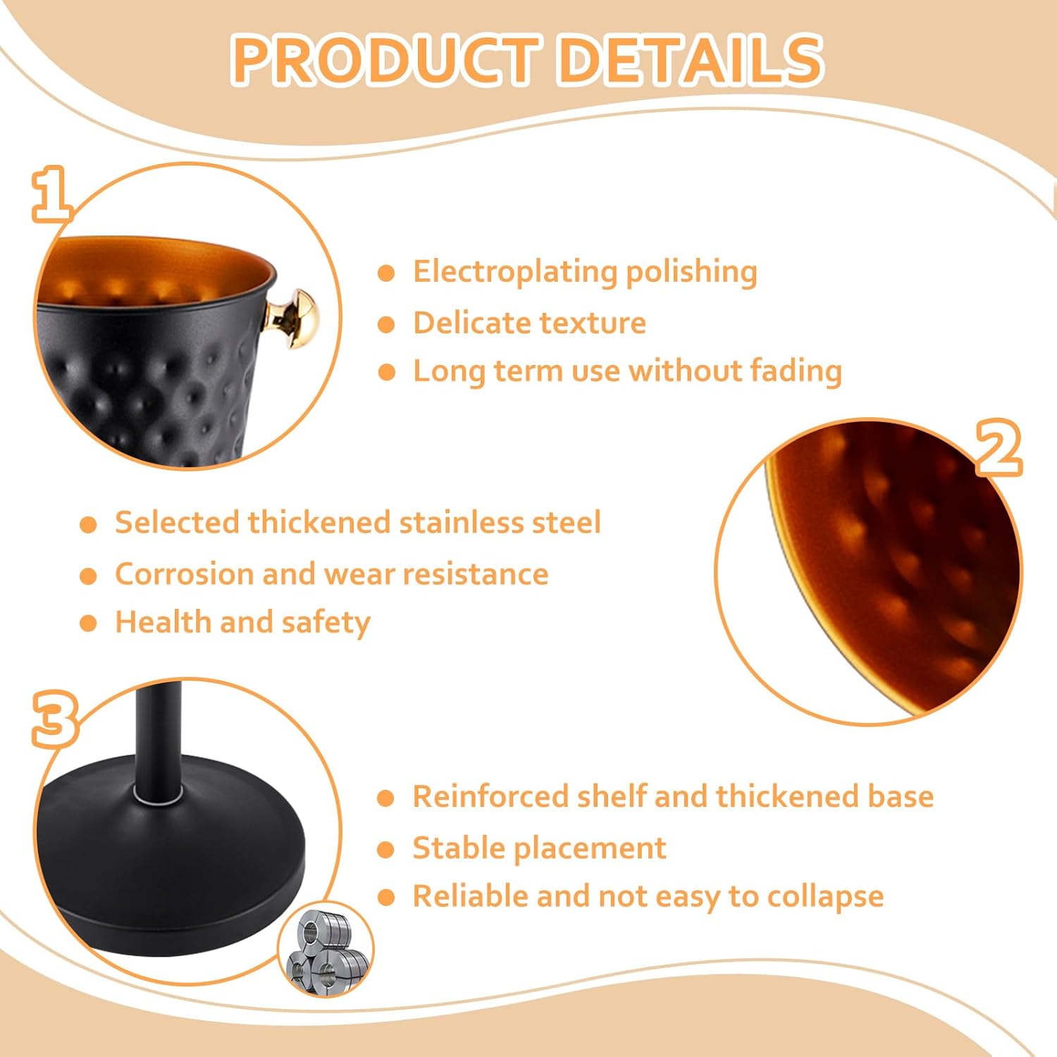 - 【Durable Material】: Constructed from high-quality, food-grade stainless steel, the ice bucket stand is both wear-resistant and corrosion-resistant, ensuring its safety and longevity while keeping drinks cool.