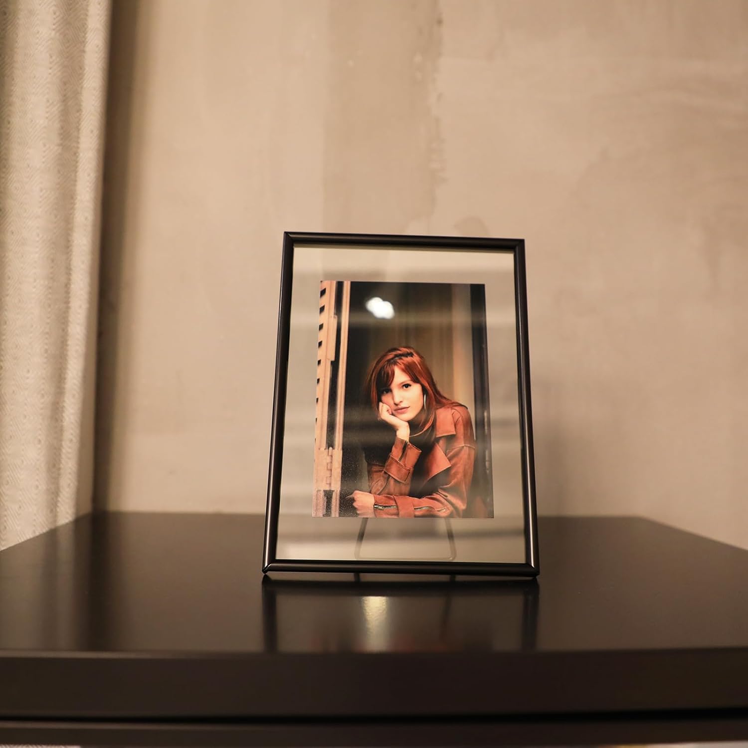 - 【Romantic Design】A black metal frame with heart-shaped stand(Put you in my heart) and transparent glass, making it looks very romantic and elegant. It appears that the photo has a floating effect on it, So you can focus on the photo.