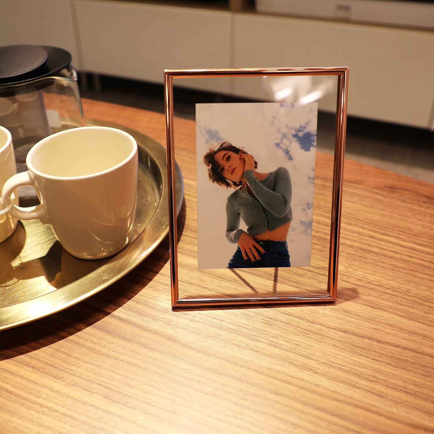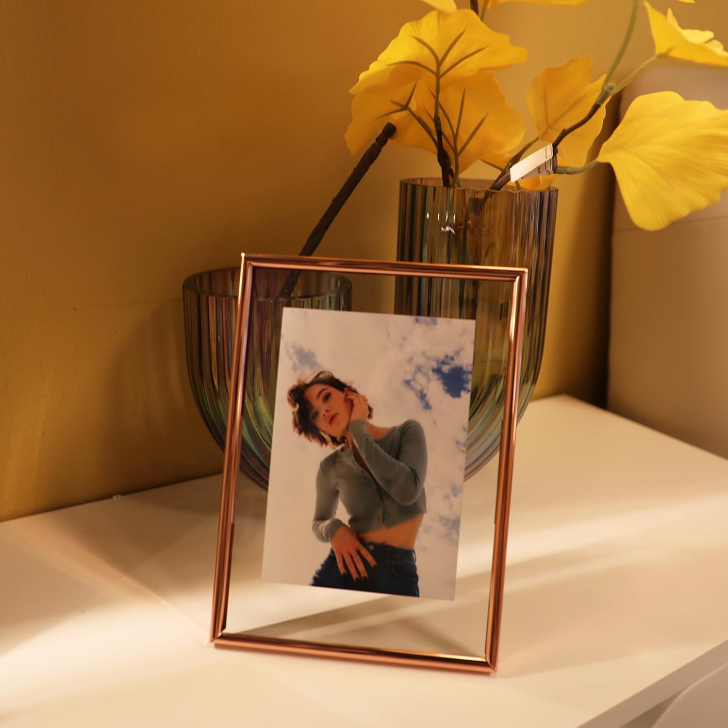 - 【Romantic Design】A rose gold metal frame with heart-shaped stand(Put you in my heart) and transparent glass, making it looks very romantic and elegant. It appears that the photo has a floating effect on it, So you can focus on the photo.