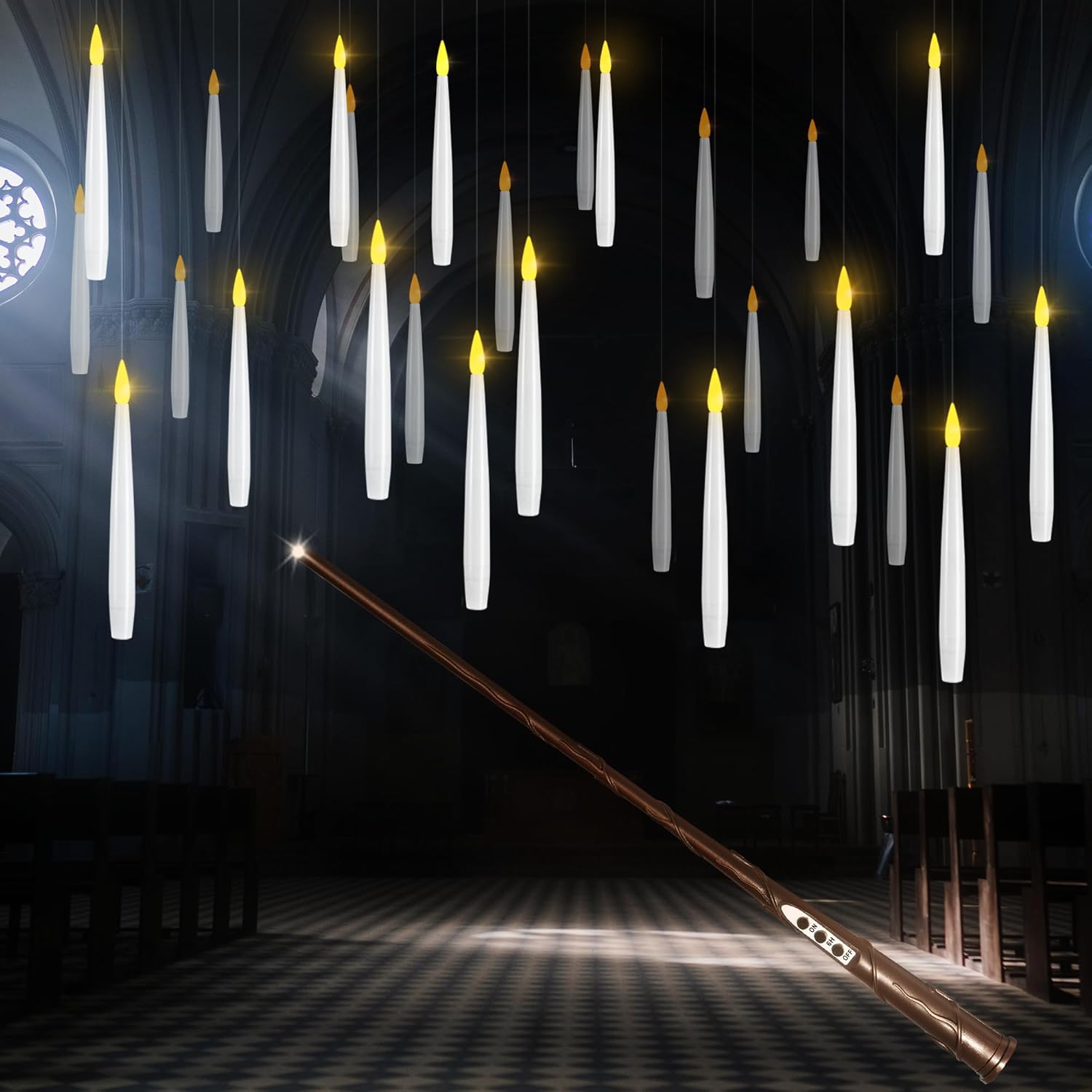 - 🔮MAGICAL GIFTS FOR FAMILIES🔮 Different from other floating candles, our magic LED candles have 2 lighting modes: Always on and flicker like real candles. Use your magic wand to control the candles and practice your magical skill. 3D realistic flicker design looks like a real taper candle flame flickering. Meanwhile, there is absolutely no fire or burning danger, you will have perfect ambient evenings with peace of mind.