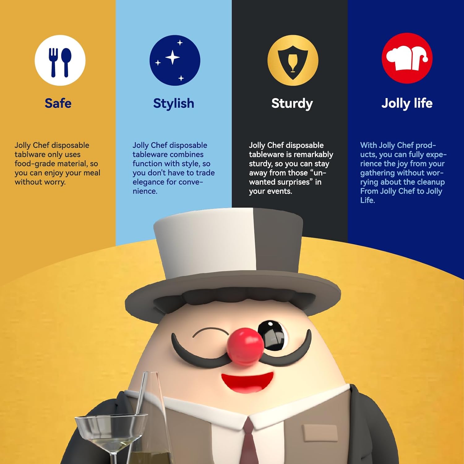 JOLLY CHEF 24 Pack 12 Oz Disposable Plastic Wine Glasses. Shatterproof, Unbreakable, Crystal, Stemless Plastic Wine Cups for Party, Halloween, Christmas
