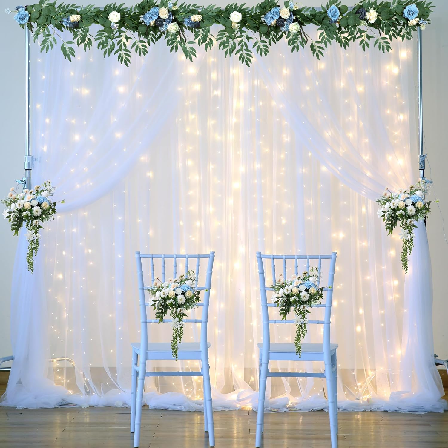 - Sheer backdrop curtains with lights wide range of use : Perfect for wedding backdrops for reception, wedding ceremony, photo booth, baby shower, birthday party, gender reveal, bridal shower, engagement, photography backdrop, photoshoot, graduation, room decorations, candy buffets, dessert tables background, Christmas decorations or anywhere you want.