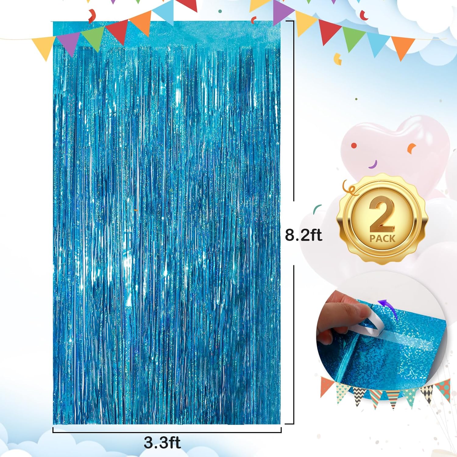 - Materials: The package contains 2 packs of aluminum foil tassel curtains with a size of 3.3 x 8.3 ft. It is long enough for any occasion. Please do not stick aluminum foil Streamers curtains to uneven or stained walls to prevent them from falling off!