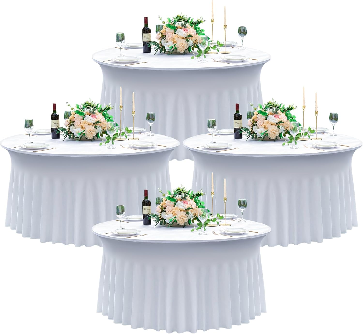 - 【Package and Size】 - Your Package will come with 4 pack white round spandex tablecloth,the size of each tablecloth is 60 inches in diameter and 30inch in height,to the flooor, tighy fit 5ft round party tables.
