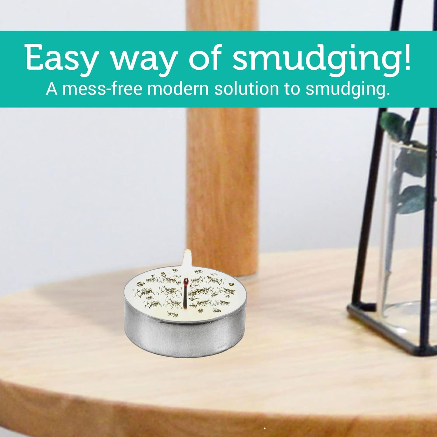 SOUL STICKS 12 Pack Little Smudgies Tealight Candles Smudge Candle for Cleansing House, Meditation, Chakra Healing | Made with Crystals and Herbs (White Sage & Eucalyptus)
