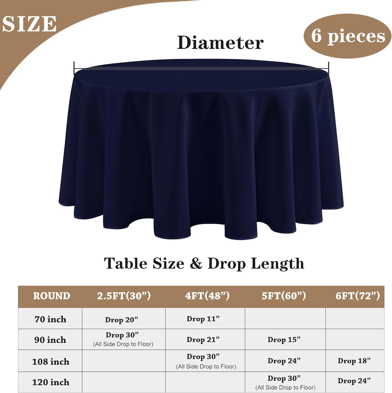 Fitable 6 Pack Navy Round Tablecloths - 120 Inches in Diameter - Stain Resistant and Washable Table Clothes, Polyester Fabric Table Covers for Wedding, Party, Banquet, Formal Events