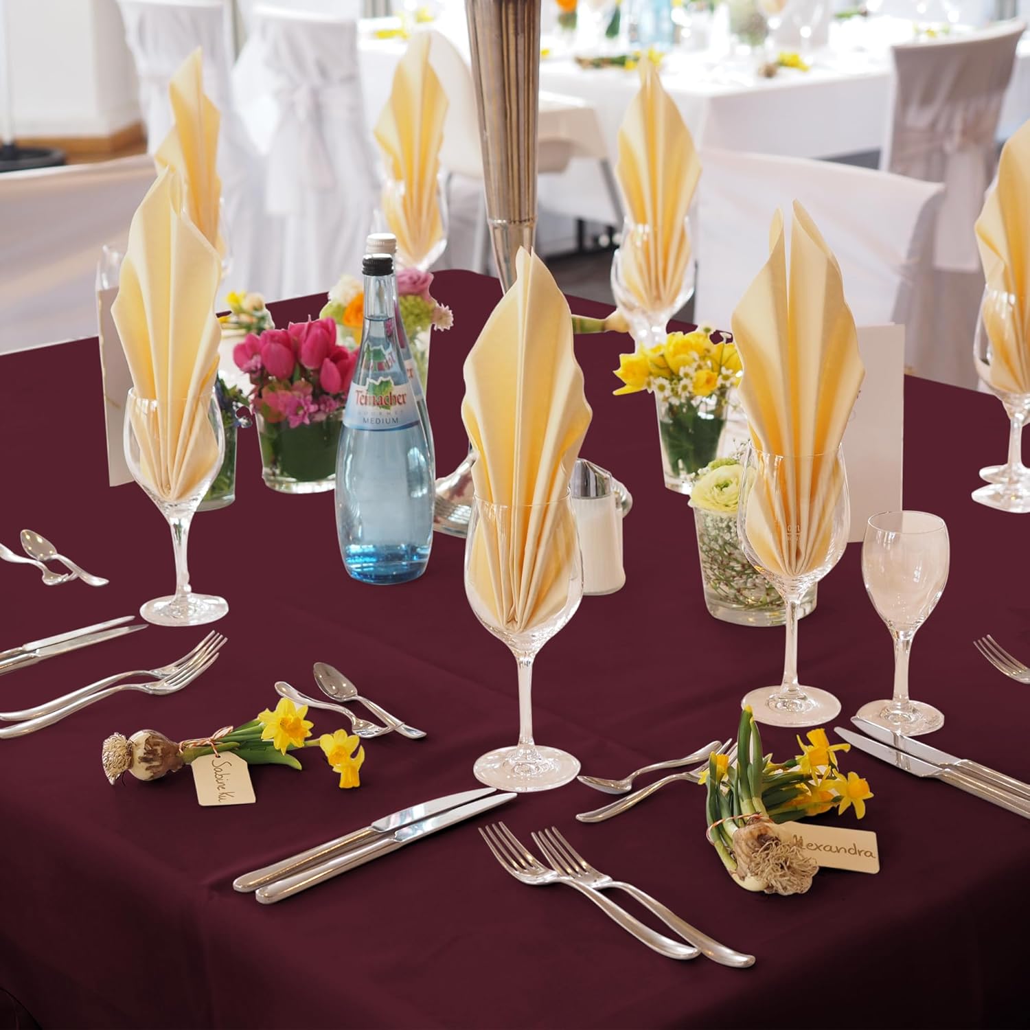 Fitable 6 Pack Square Tablecloths - 70 x 70 Inches - Stain Resistant and Reusable Table Clothes, Burgundy Polyester Fabric Table Covers for Dining, Card Tables, Coffee Tables