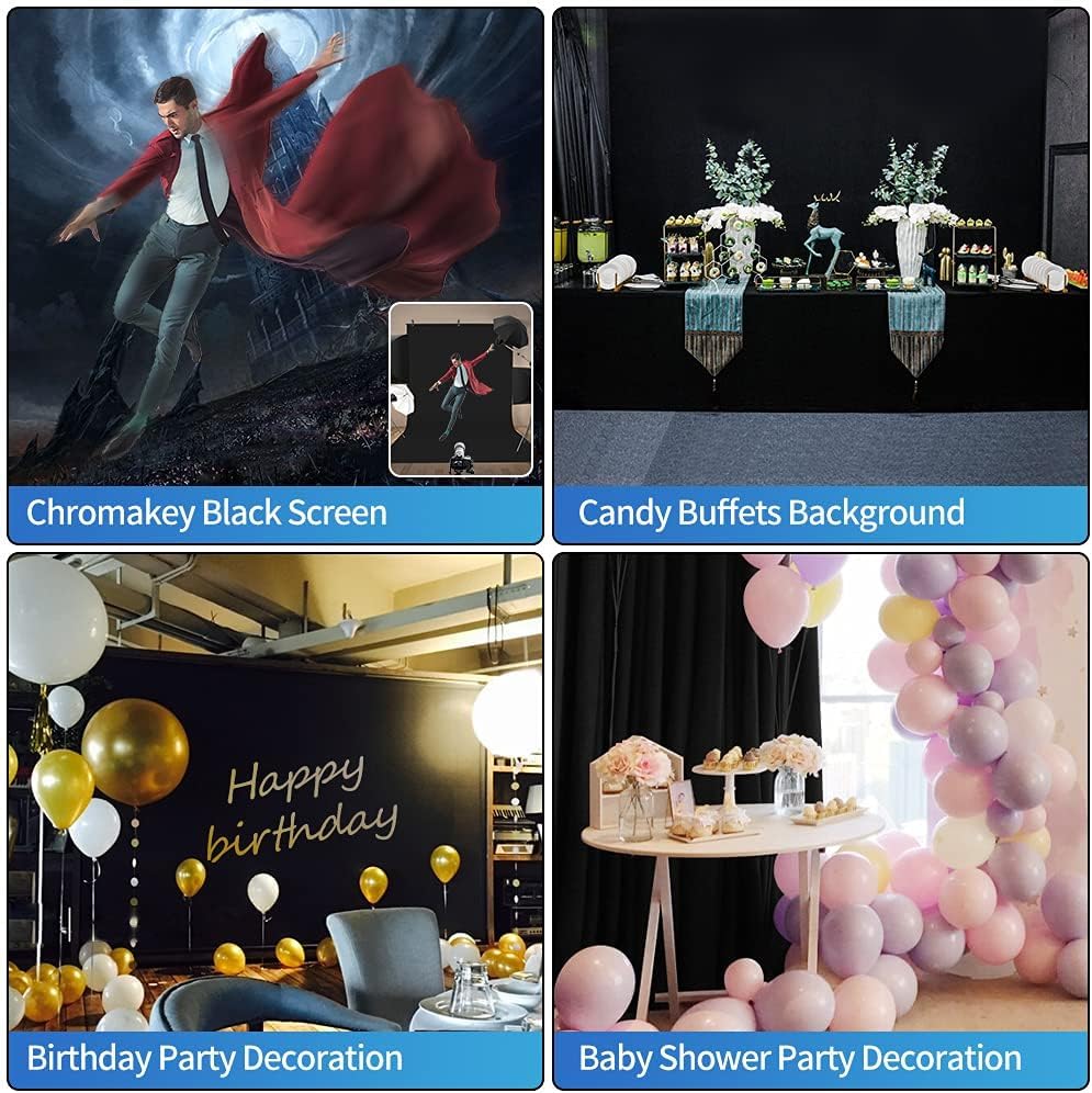 - Wide Use: Black backdrop cloth is also perfect for weddings, receptions, parties, bridal and baby showers, birthdays, candy buffets, ceremony, arch stages photography, photo booths, video broadcast, interview and more.