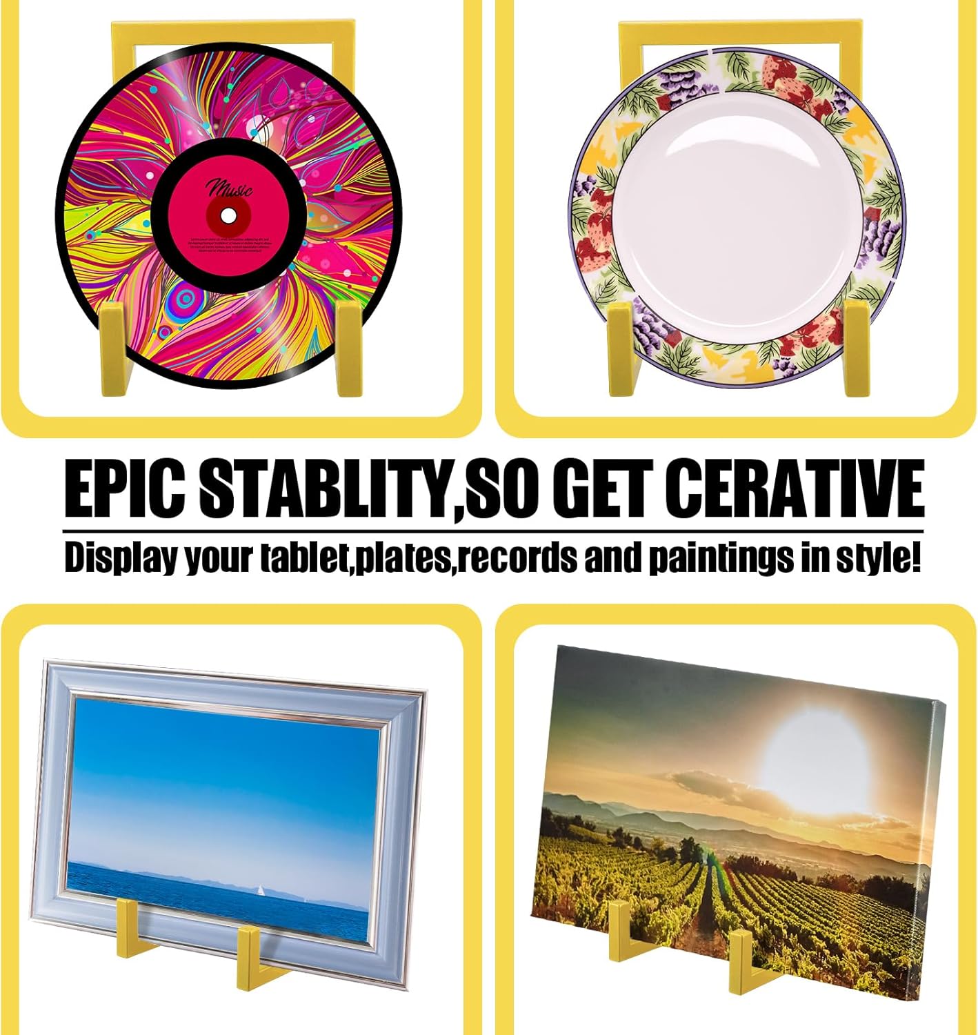 - Enough Quantities: what you will receive are 2 pieces of metal plate holder display stand, designed in gold color, elegant and classic; Enough quantities and suitable sizes are able to fully meet your use and replacement needs for display in your daily life or exhibition activities