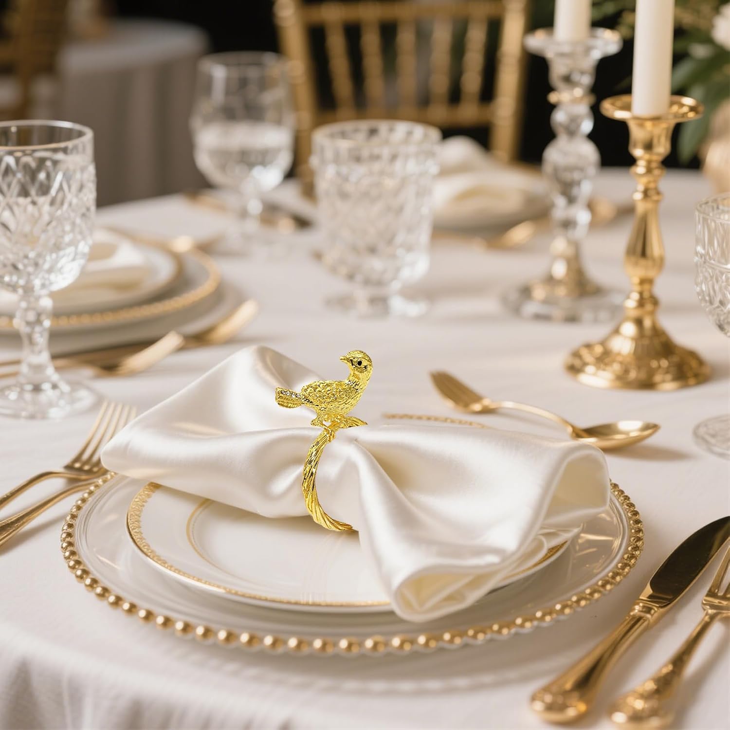 - 🗓️ Napkin Rings for Holiday Banquet : This napkin ring is nice for various dining table decor,As the fall garden parties table decor,wedding napkin rings in rustic farmhouse,Shiny at holiday banquet as Thanksgiving day,Christmas napkin rings,It's a good ideal to setting this bird napkin rings on your table for everyday use after as patriotic napkin rings at 4th of July barbecues