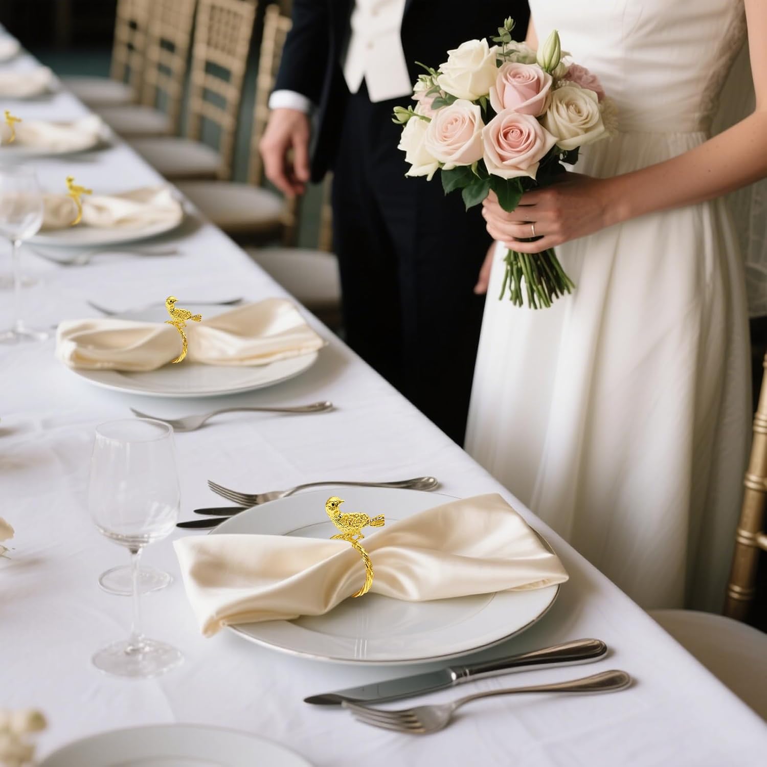 - 🌟 Napkin Rings set of 8 for Dining Table Decor: Total of 8pcs napkin rings are in the package of this gold napkin rings set,Pair standing bird Napkin Rings with flower table accessories to create farmhouse-themed table decoration for daily,the gold napkin ring holders is suitable as metal napkin holders for cloth napkins or rustic napkin rings for home dining table decor