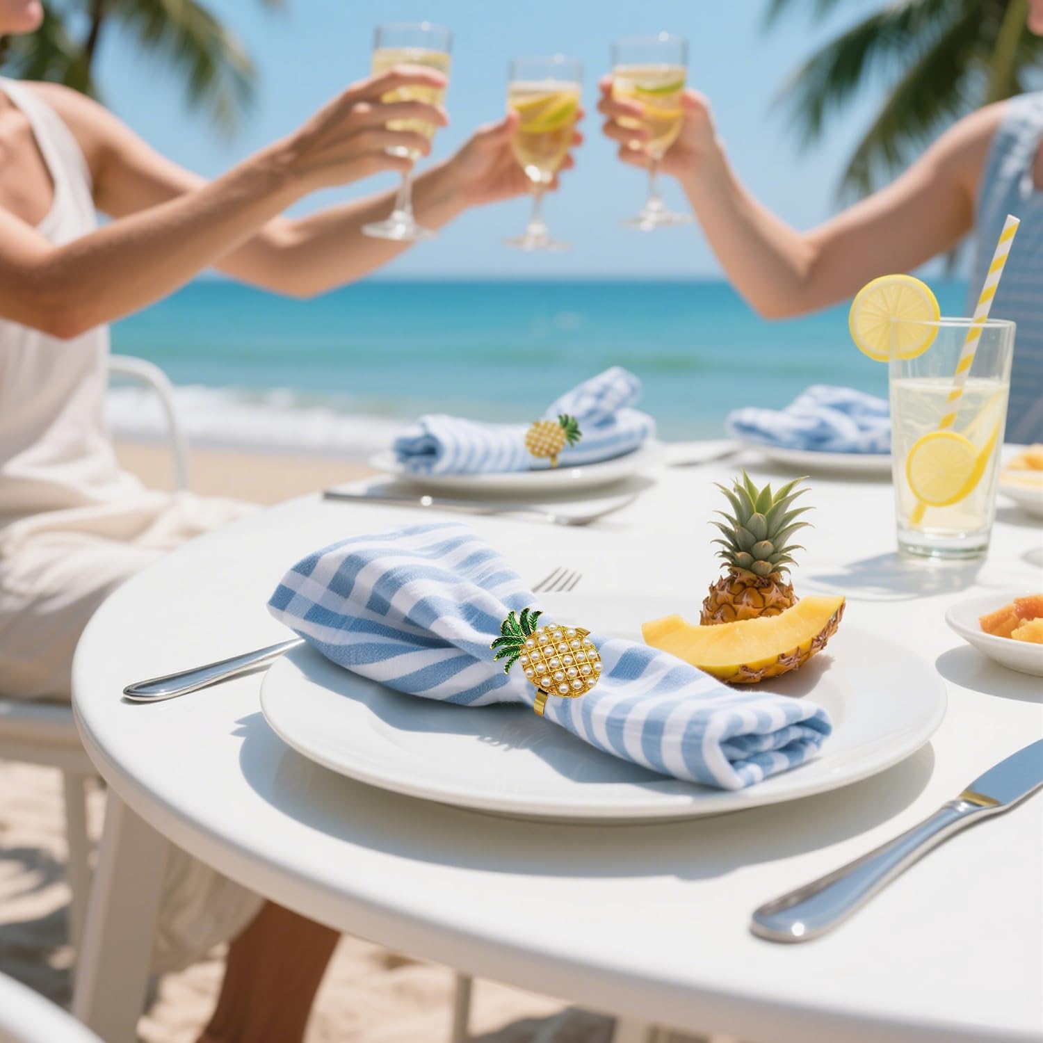 - 🌟 Napkin Rings set of 8 for Dining Table Decor: Total of 8pcs napkin rings are in the package of this napkin rings set,Pair Pineapple Napkin Rings with tropical table accessories to create farmhouse-themed table decoration for daily,the gold napkin rings is suitable as fruit napkin holders for cloth napkins or rustic napkin ring holders for home dining table decor