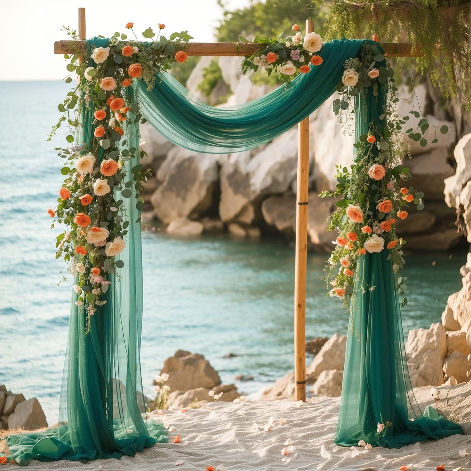 - Premium Wedding Arch Draping Fabric: These Sheer Drapes are made of 100% wrinkle-free tulle fabric, touch silky soft and looked romantic elegant, used sturdy and reusable . Whenever you use these scarf curtain, they can always keep smooth and flat.