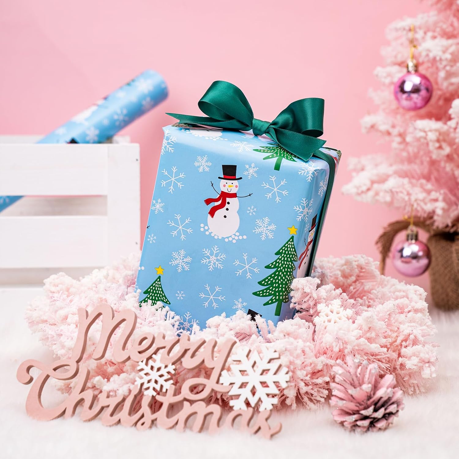 - Kid-Friendly Christmas Design: Bright and playful, the snowman and Christmas tree pattern brings smiles to kids and families—perfect for wrapping children’s holiday gifts and party favors.