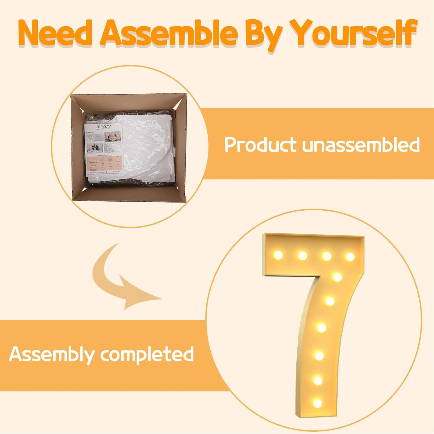 - Assembly Required: Our large marquee numbers is made from foam board and easy to assemble with our splicing mode. Just follow the numbered instructions to align and insert the bottom plate, and reinforce it with a hot glue gun. Then, you're done!