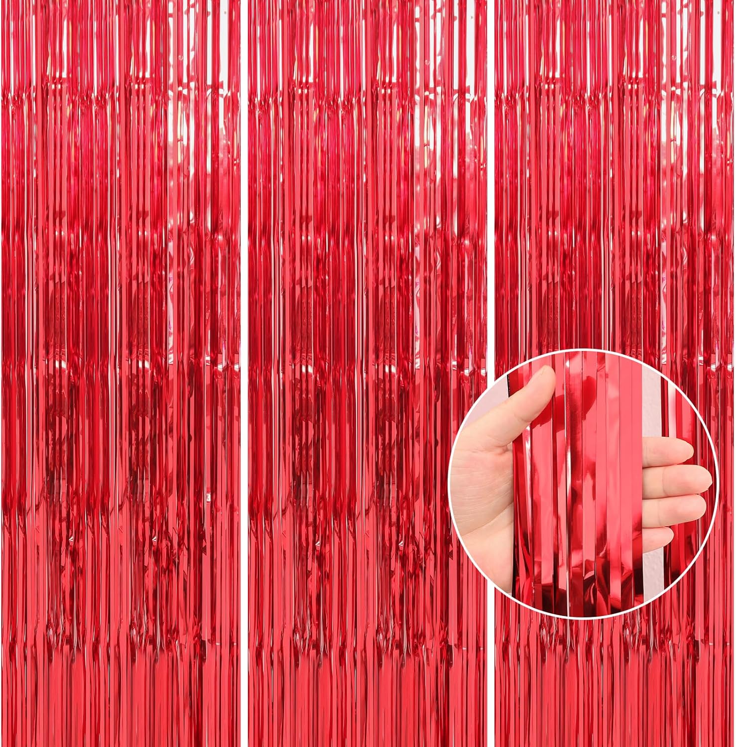 Crosize 2 Pack 3.3 x 9.9 ft Red Foil Fringe Curtains Party Decorations, Red Tinsel Curtain Backdrop for Parties, Door Streamers, Glitter Streamer Fringe Backdrop for Birthday Decoration