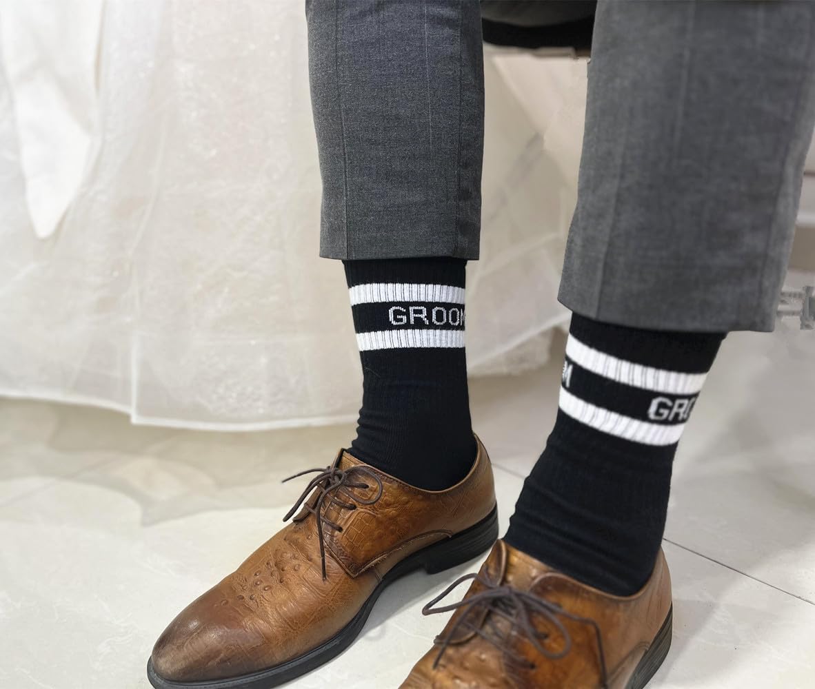 - ❥❤ Socks have two categories:Bride & Groom. One size fits US Women&men These socks are adorable!! You could definitely picture your groom wearing them during your bachelorette party or the night before the wedding!