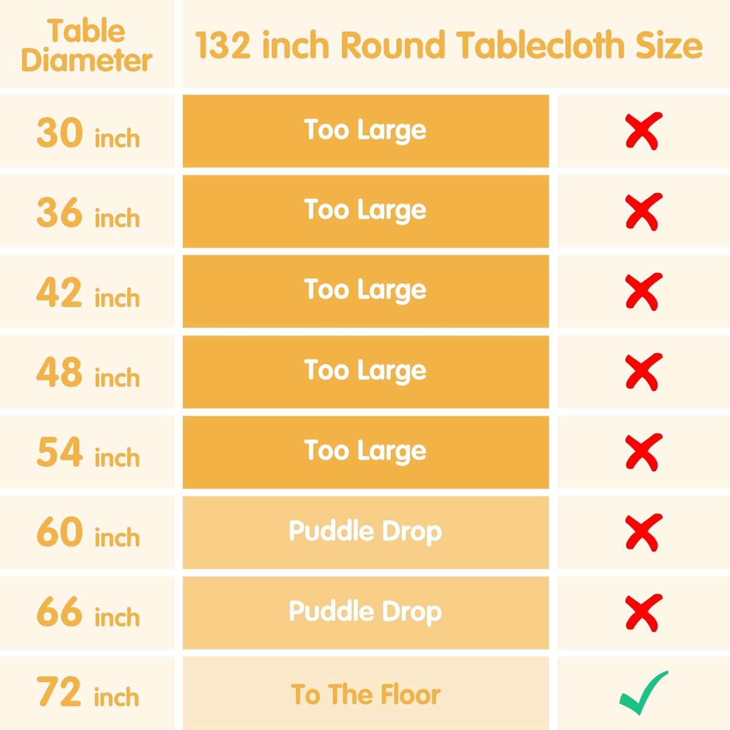 - Elegant: The tablecloths dress up your area nicely and add an elegant touch to your events, your guests will be impressed