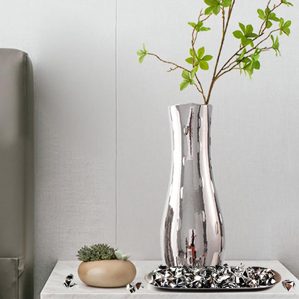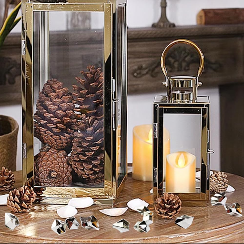 HappyFiller Silver Fake Ice Rocks Cubes Acrylic Gems Treasure Gemstones for Vase Fillers,Wedding Table Scatters,Crafts,Christmas Home Decorations,13 OZ