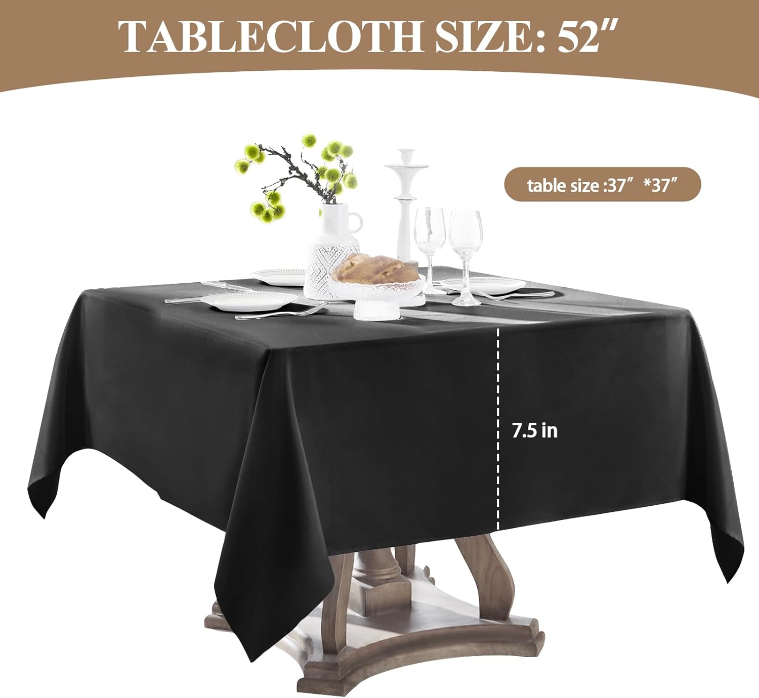 Square Tablecloth 52 x 52 Inch Black 10 Pack Tablecloths Stain-Wrinkle Resistant Washable Polyester Table Cloths for Holiday, Buffet Parties,and Wedding