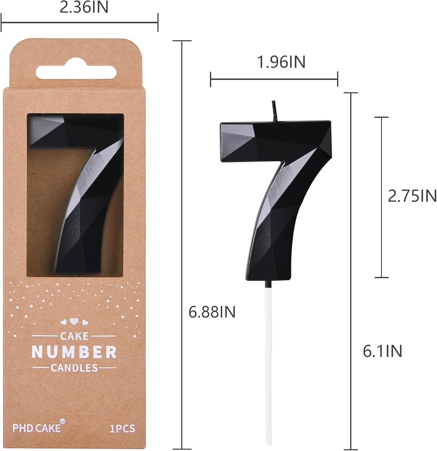 - New: 2.76 Inch Large Crystal Black 7 Number Birthday Candle designed to make your cake and birthday a unique and truly inspiring event.