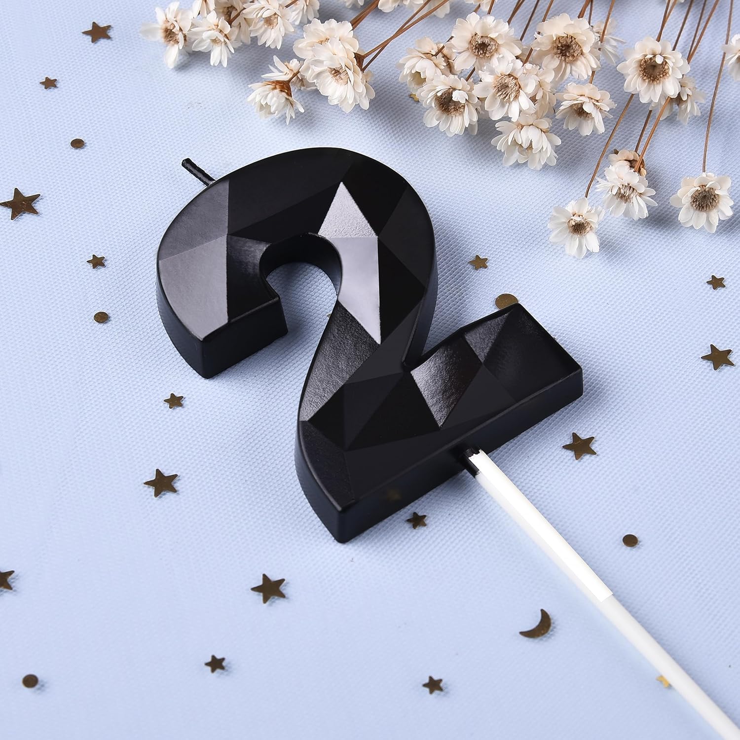 - New: 2.76 Inch Large Crystal Black 2 Number Birthday Candle designed to make your cake and birthday a unique and truly inspiring event.