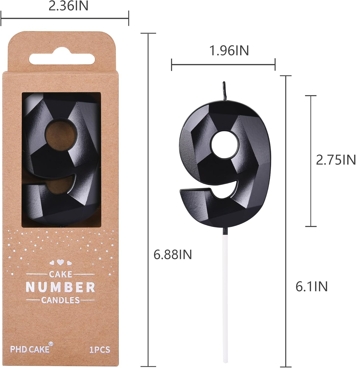 - New: 2.76 Inch Large Crystal Black 9 Number Birthday Candle designed to make your cake and birthday a unique and truly inspiring event.