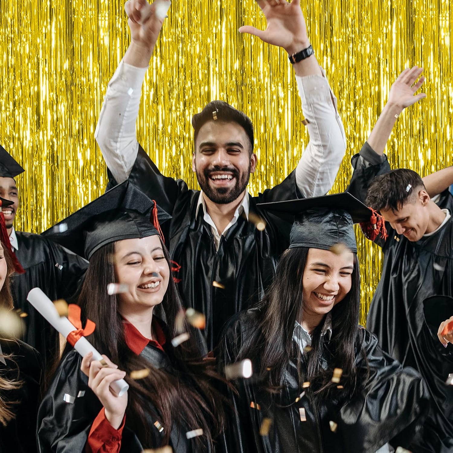 - Material: The metallic tinsel backdrop is made of tinsel with shiny surface, durable material can be reused. Good for adding sparkle as decorations for parties.