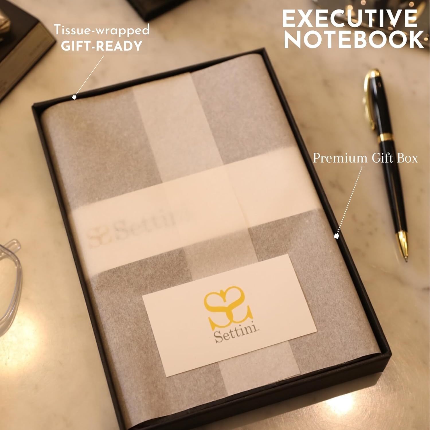 SETTINI Journal Notebook for Writing, Vegan Leather Hardcover Notebook - Pen loop, Back Pockets & Lay-Flat design, 120 GSM A5 College ruled Bleed free Paper, Gift Set for Men and Women, Onyx Black - Birthday Gift