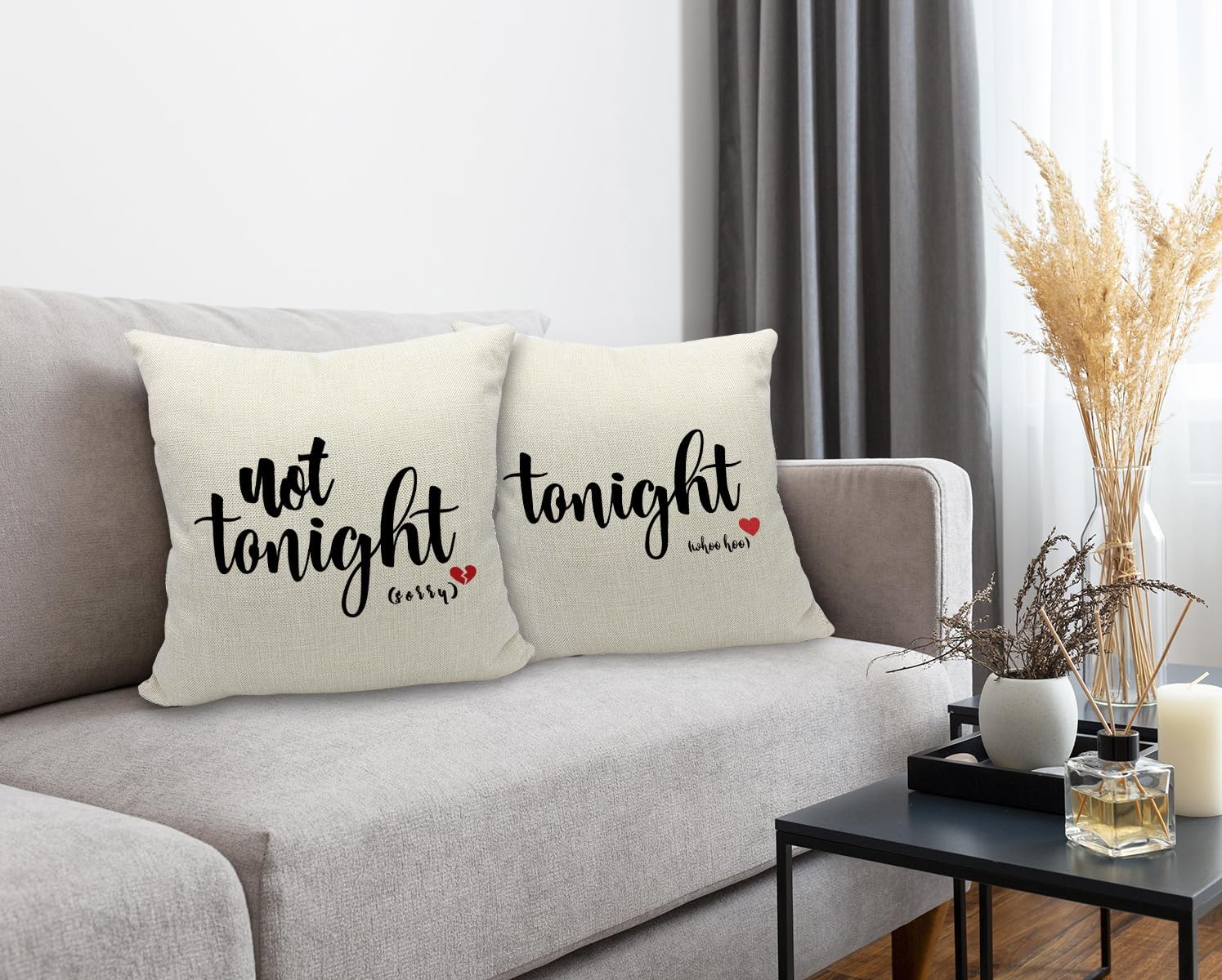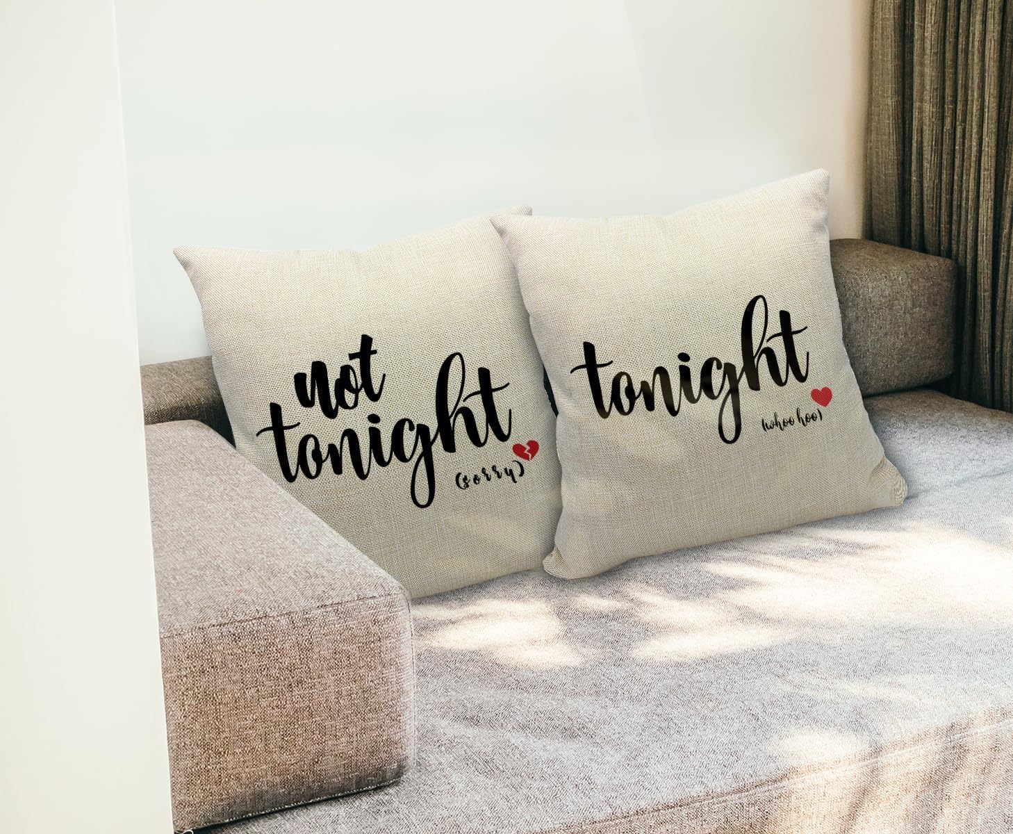 - Dual-sided Design: Enjoy the versatility of two charming patterns – "Tonight" and "Not Tonight." Playfully set the mood by flipping the pillow to match your desires, adding a touch of fun to your bedroom or sofa.