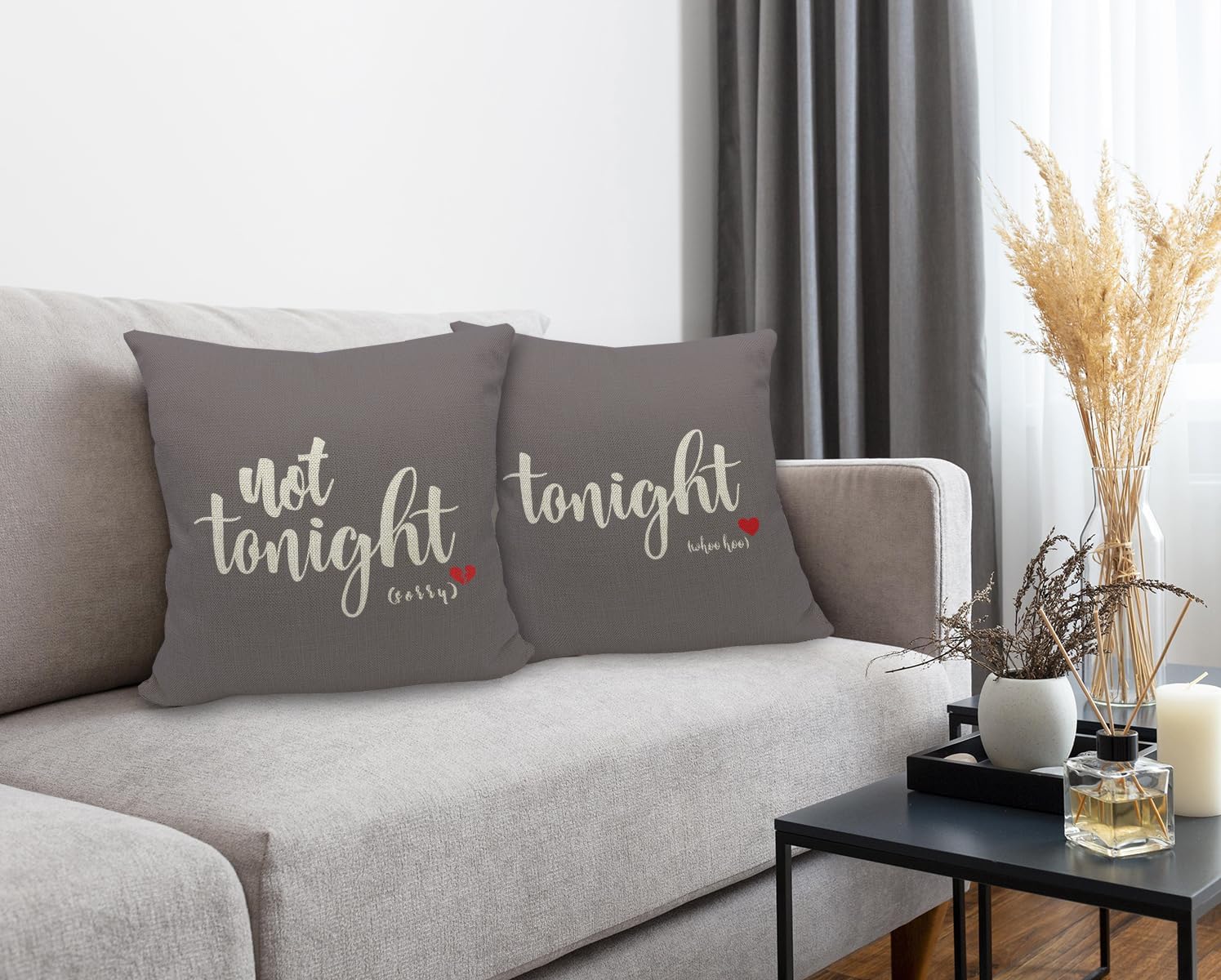 - Dual-sided Design: Enjoy the versatility of two charming patterns – "Tonight" and "Not Tonight." Playfully set the mood by flipping the pillow to match your desires, adding a touch of fun to your bedroom or sofa.