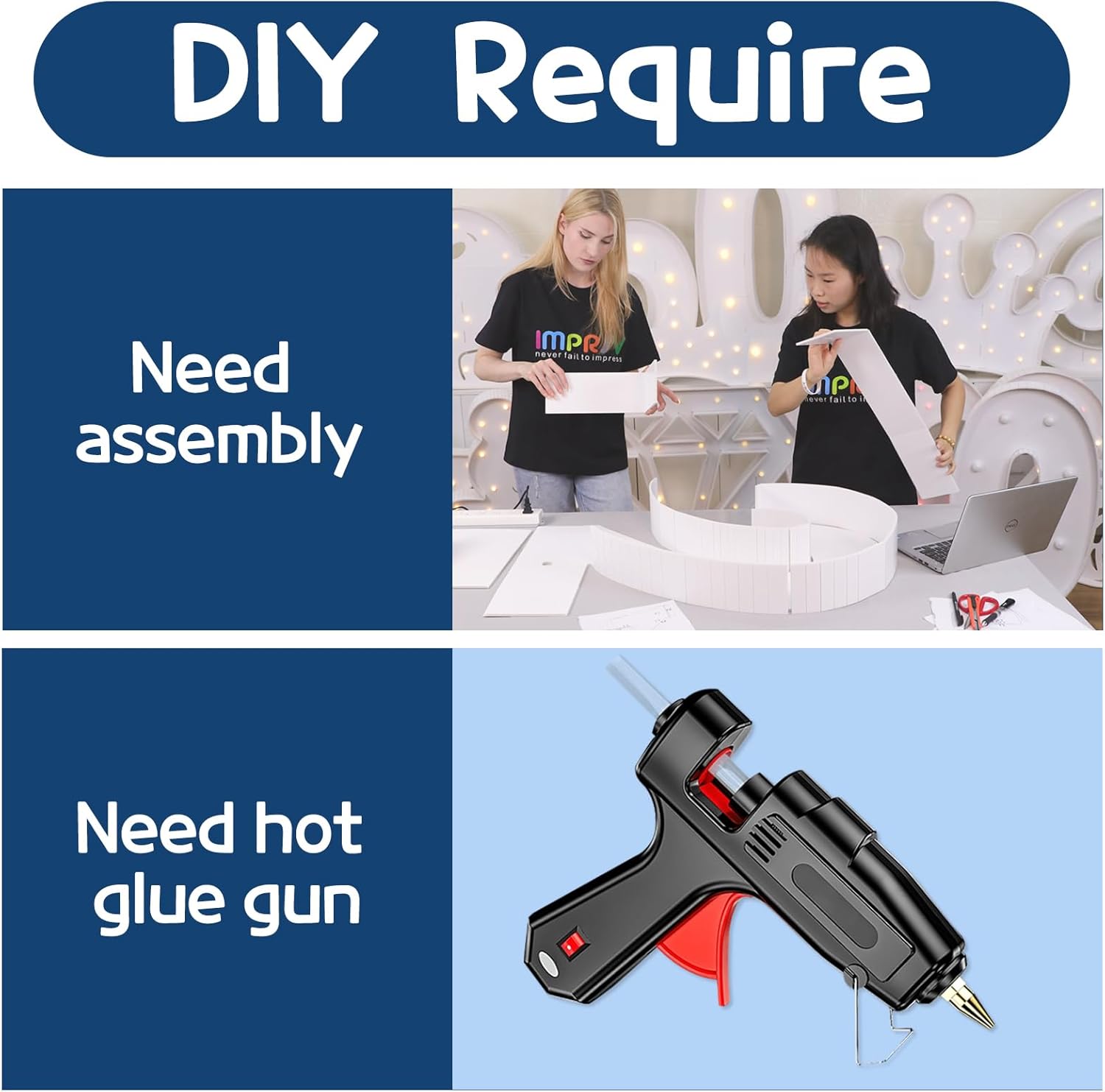 - Need Assembly: Assembly requires a hot glue gun, and we have pre-cut the marquee light up letters into several pieces. You can refer to the instruction manual to assemble the marquee letters 3 feet tall using a hot glue gun.