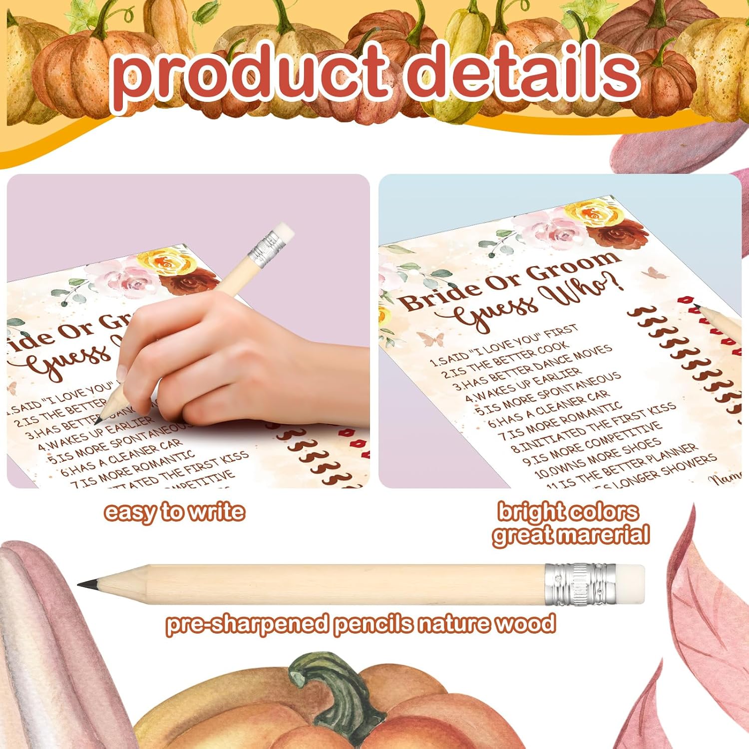 - Sturdy and Safe: made of colored paper material, our game bridal shower cards are safe and reliable, each is approx. 7.87 x 5.51 inches/ 20 x 14 cm; Meanwhile, the pencil adopts wood material, and measures about 3.94 inches/ 10 cm in length; They are ideal supplements to bridal showers, wedding parties, engagement parties and bachelorette parties