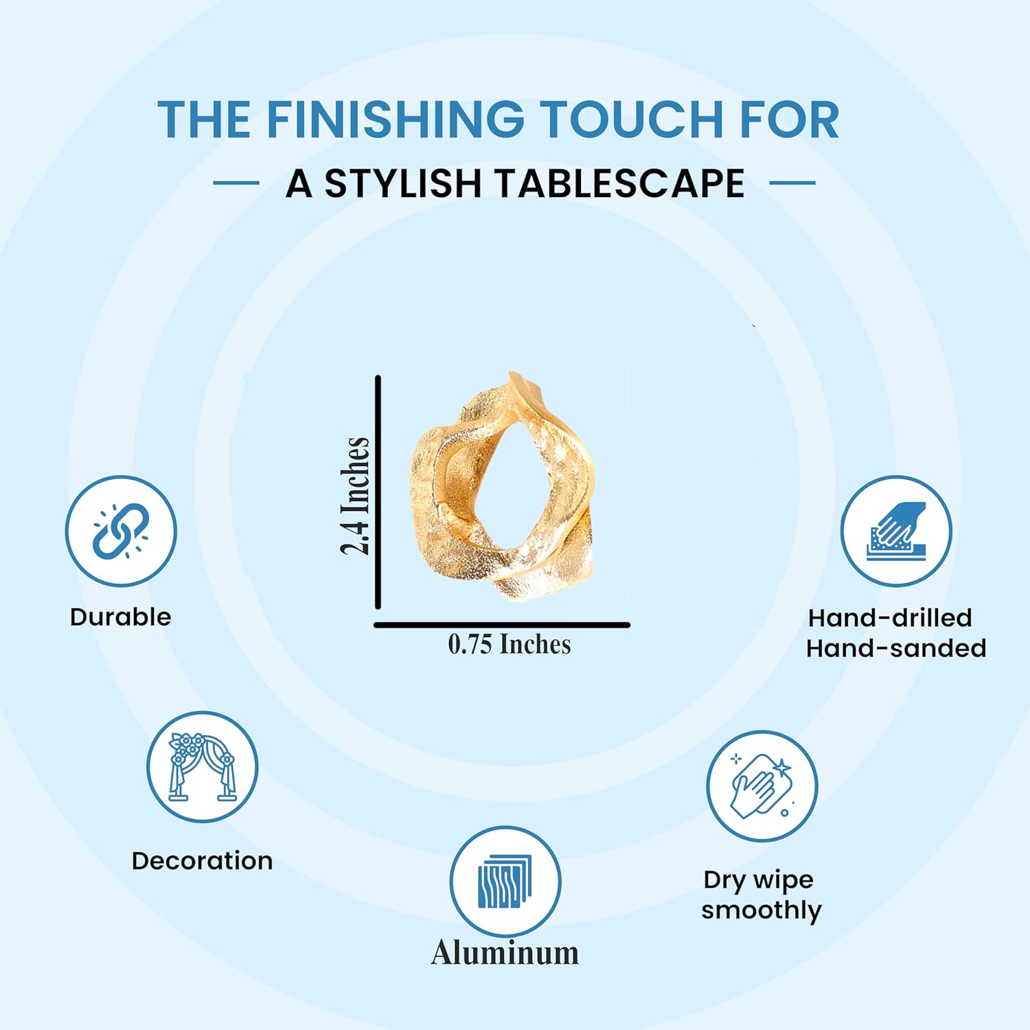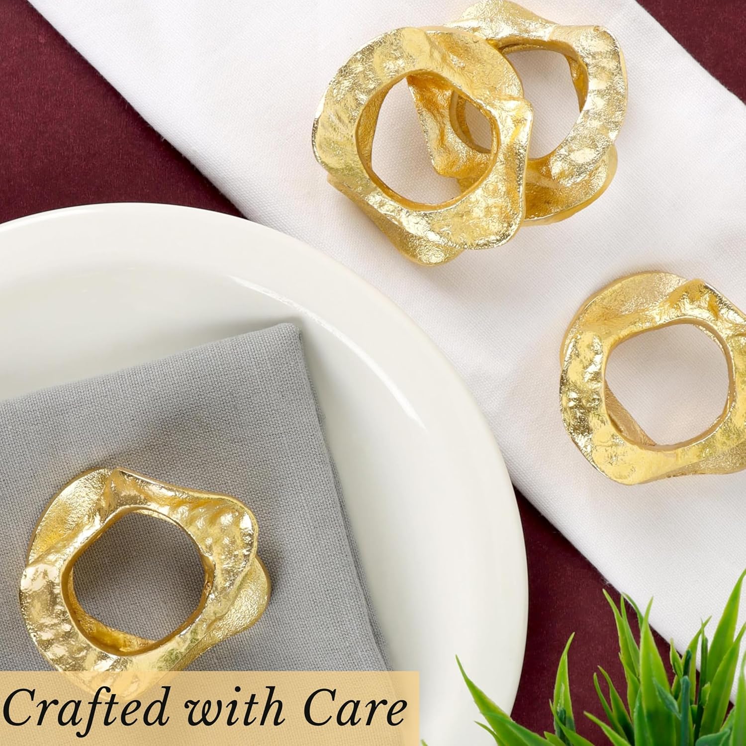 - ✅ VERSATILE : A striking choice for contemporary tablescapes, formal dinners, holiday feasts, or designer weddings. These abstract gold rings enhance any setting with their art-inspired shape and chic sophistication.