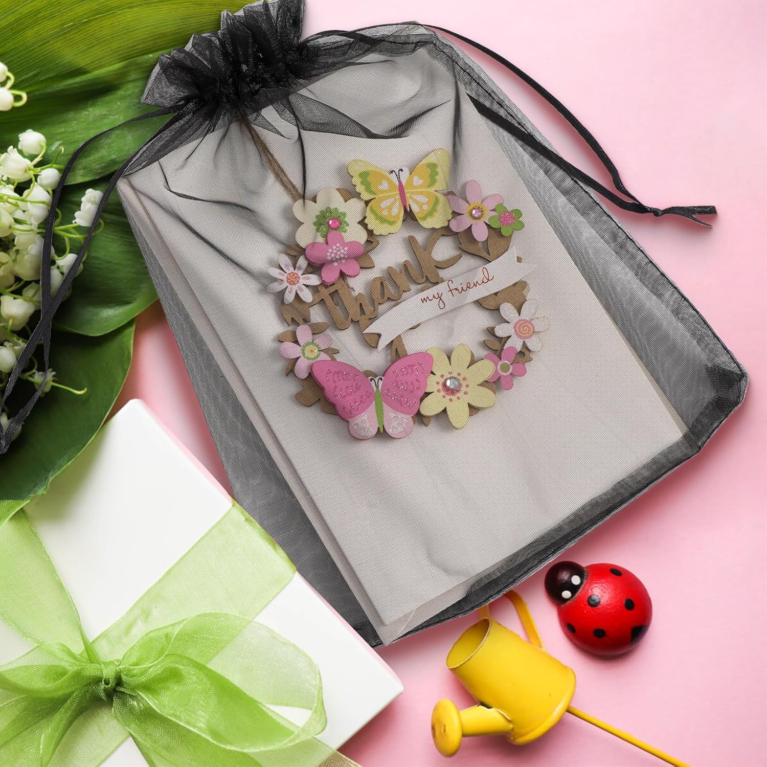 - SIZE&COLOR- Size: 6.5x9 Inch, Color: BLACK, also available in other colors (Orange, White, Purple, Pink). Package includes 50 pieces of black organza bags, perfect for various occasions: Valentine, Christmas, Halloween, Wedding or Birthday, etc.