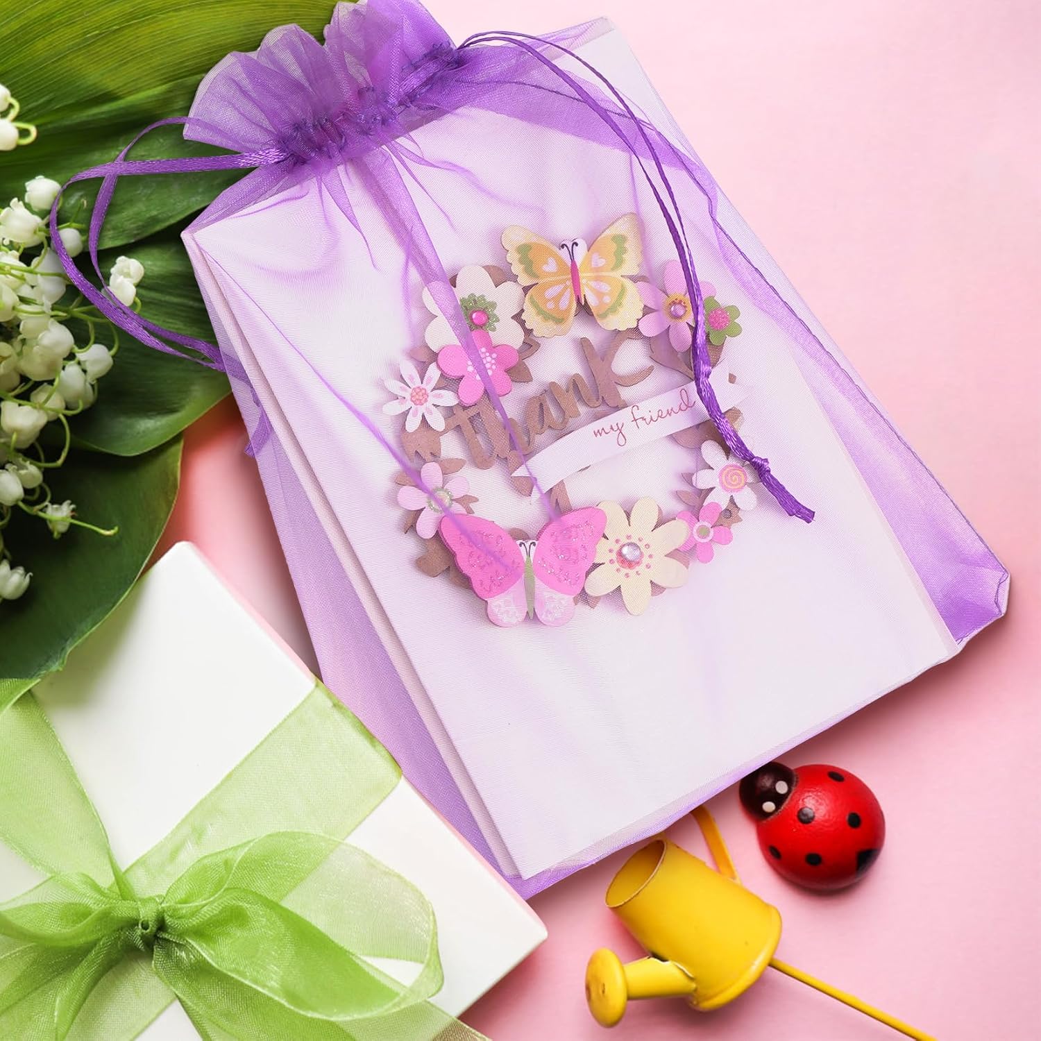 - HIGH QUALITY MATERIAL- Our organza gift bags are made from premium sheer organza fabric, known for its softness, smooth texture, and durable fine mesh construction. The material's elegant sheerness allows a glimpse of the contents inside, adding a touch of luxury to gifts or items.