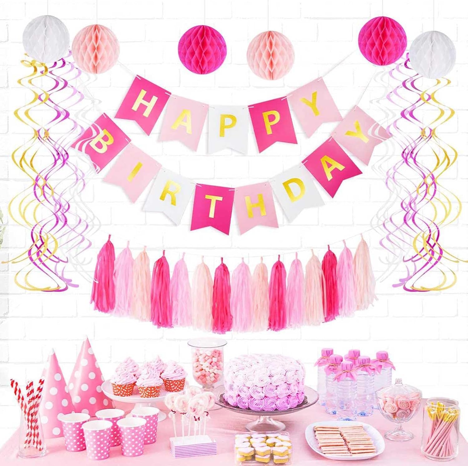 GAKA Hot Pink Light Pink Tissue Paper Tassels Garland Tassel Banner for Party Decorations,15 PC