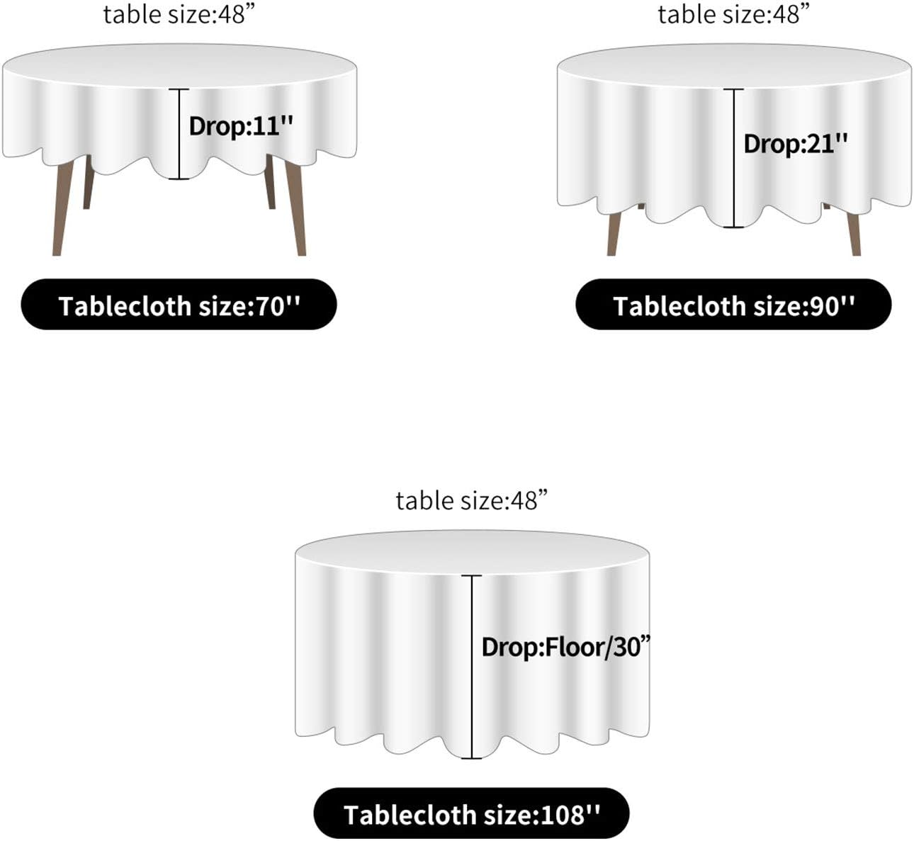 - MULTIPLE COLORS & SIZES: various of colors to meet your different subject of events. Different sizes to fit for big or small tables, with longer or shorter draped skirts. Before purchase, measure your tables and check our size pictures to get a better idea how it looks on your table.