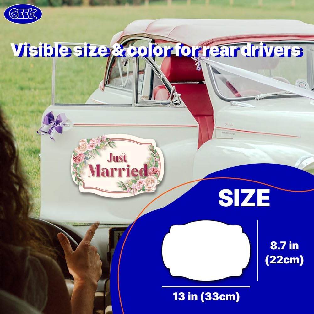 - 【Lovely Wedding Magnets】 - Crafted with high-quality magnet material, our "Just Got Married" magnets feature a charming design that instantly captures attention, adding sweetness to your wedding car and creating a memorable atmosphere. Choose these high-quality and special magnets for your special day! [ 2 Pack l Size: 13inch (33cm) x 8.7inch (22cm)]