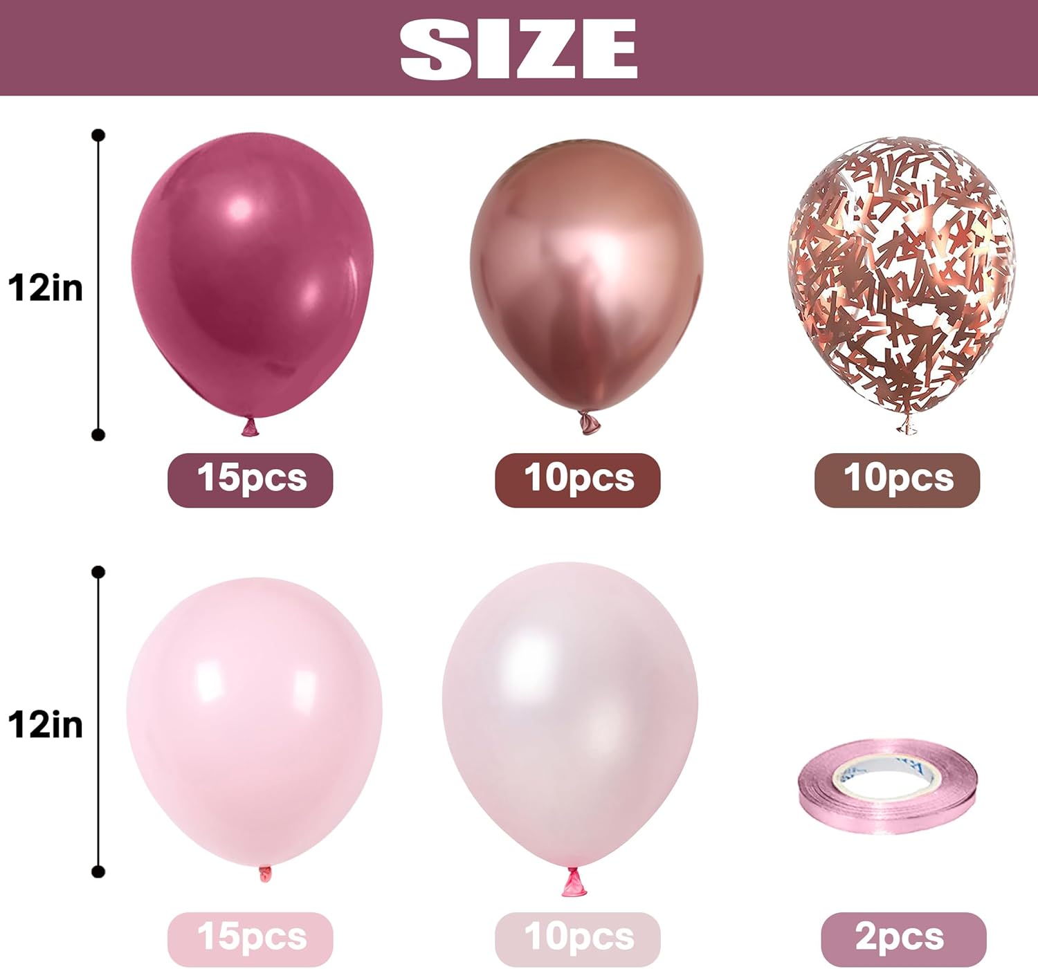 Togvu Dusty Rose Balloon Set, 60 Packs 12 Inch Retro Pink Metallic Chrome Rose Gold Pearl Pink Macaron Light Pink Balloons for Girls Birthday Decorations, Bridal Shower, Wedding, Bachelorette Party