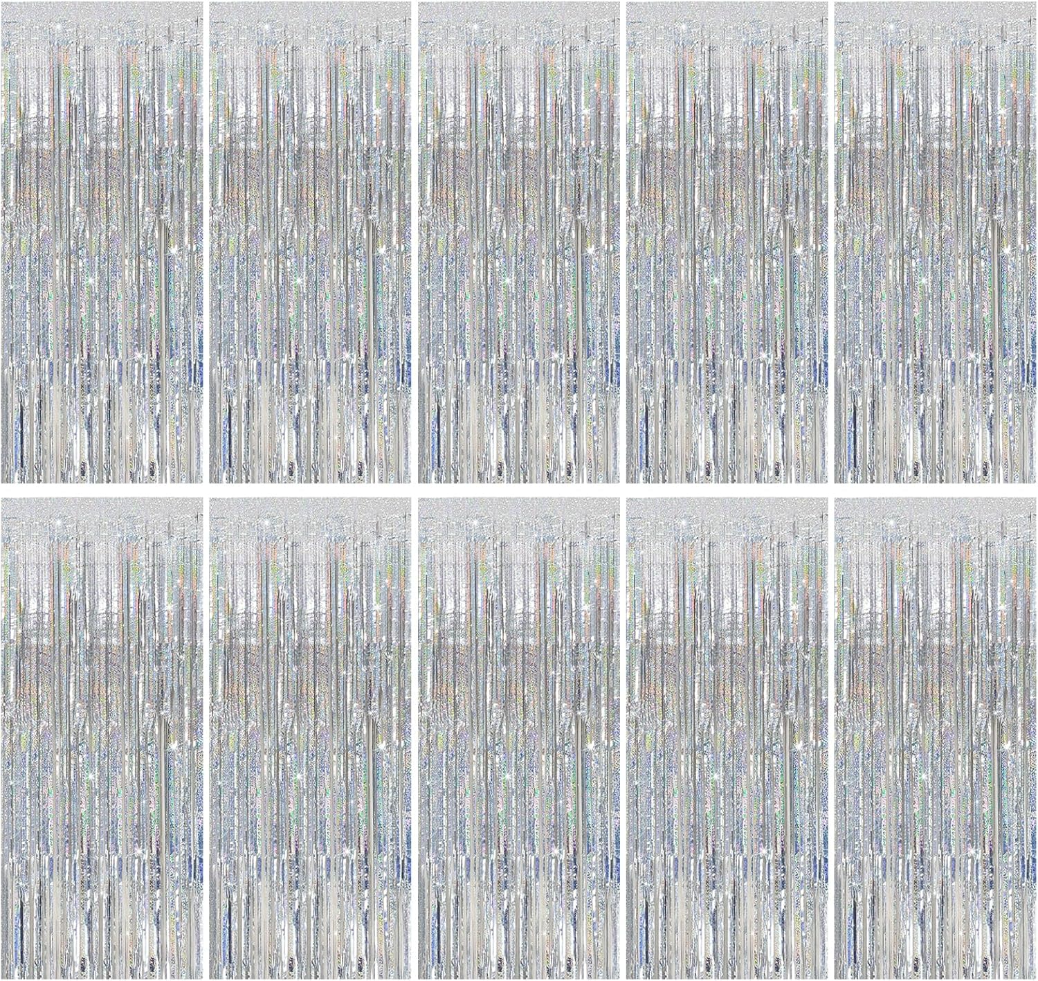 - Tinsel Curtain Party Backdrop: 10Packs/Set, enough quantity for your party decoration. Each pack curtains size is 3.28 ft x 6.56 ft, enough length for decorate your party. Perfect accessories for decorating doors and walls to create an impressive decoration for parties, events, and photo booths.