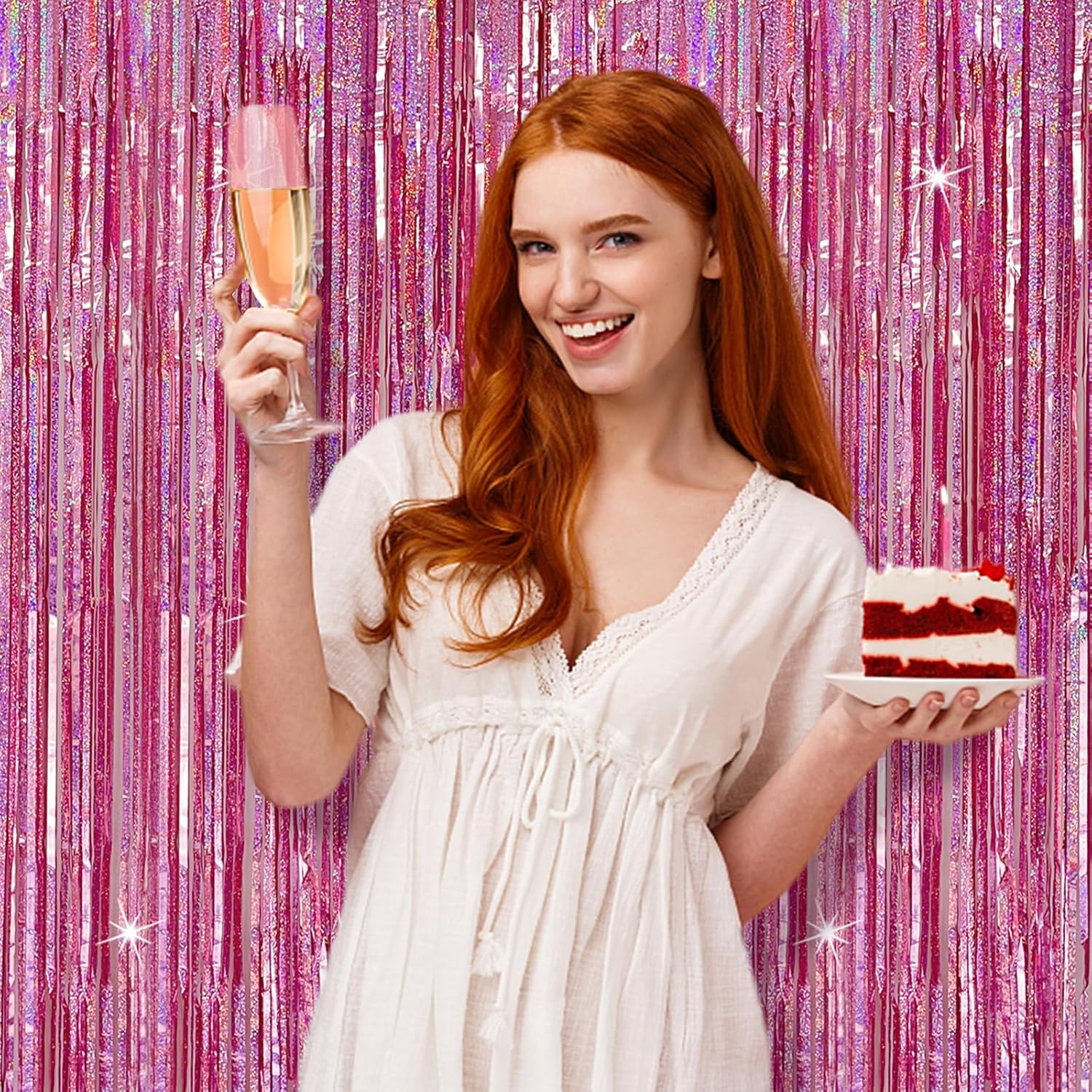 - Party Backdrop Decorations: You can use this glitter gorgeous tinsel foil fringe background to decorate your celebration party. Hang them on a carpeted end or wall as a backdrop,or it could be one entrance to the party. You can paired with an LED light, balloons, banners and various photo props on this backdrop. All the guests who come to bless you will feel your love and beauty and was remembered for having a great party!